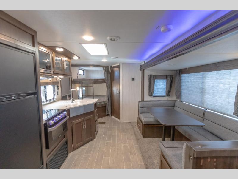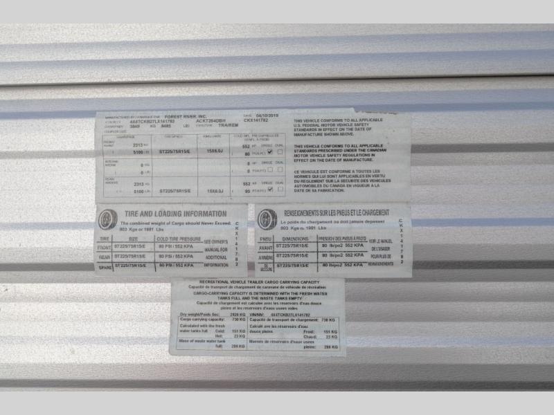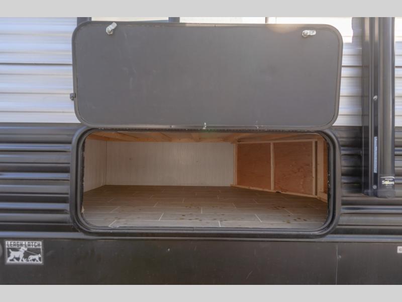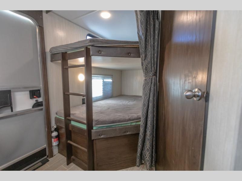 This Cherokee travel trailer can certainly house a bunch of campers looking for a fun weekend getaway! With double-size bunks, a queen-size bed, plus a sofa and a U-shaped dinette, you will have easy sleeping for ten! So gather the family and a few extra friends and head out for a great time to explore, relax, and just simply enjoy! You will find the large slide out provides a nice amount of space in the main living/dining area, and the private bedroom features its own exterior entrance door. You will also find that this unit provides loads of storage for your gear and necessities both inside and out!