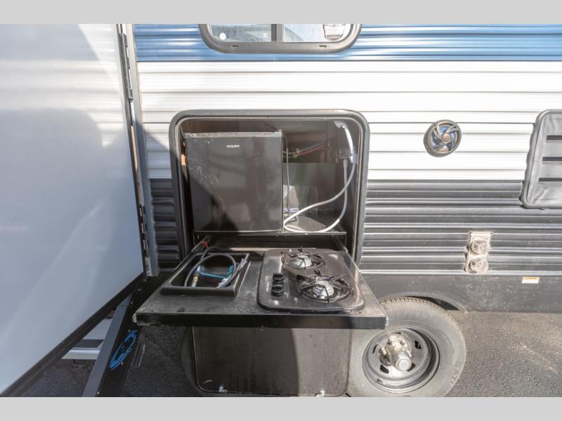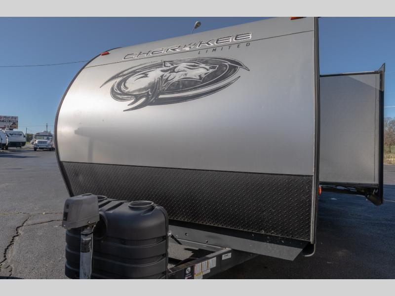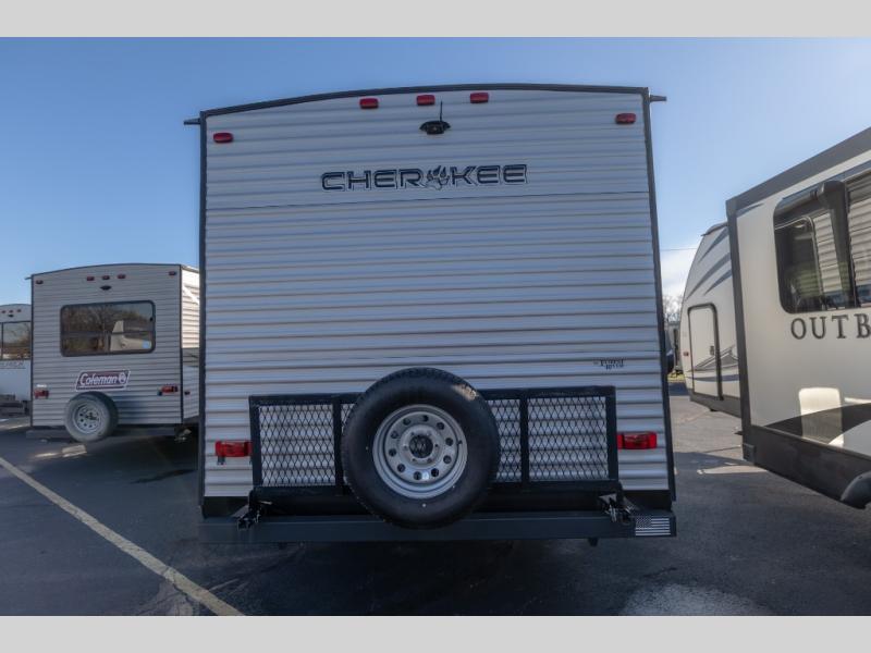 No matter which Cherokee model by Forest River you choose, you can rest assured knowing that each unit is built to provide you with great value, comfort, and style making it easy to get up and go as soon as the urge strikes. Each model features two-toned exterior metal and upgraded graphics, a one-piece rubber roof with 3/8" walkable roof decking, and a front stone guard for protection. Inside of each unit, you will enjoy comfortable seating and mocha-stained shaker-style cabinets. There are also a variety of optional packages available that will provide additional features, like the Base Camp Package, the Campfire Package, and the Limited Package. So when the open road calls, answer with your very own Cherokee travel trailer or toy hauler in tow!