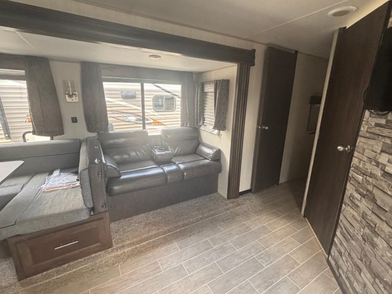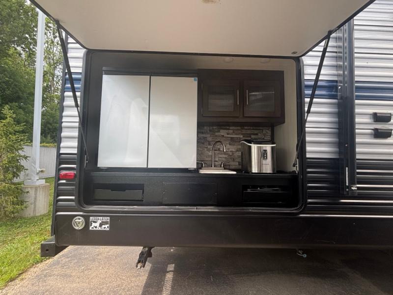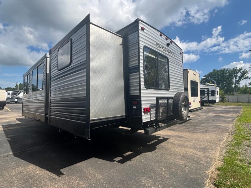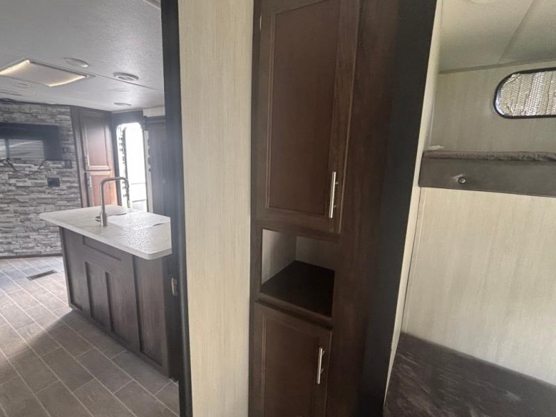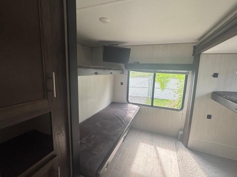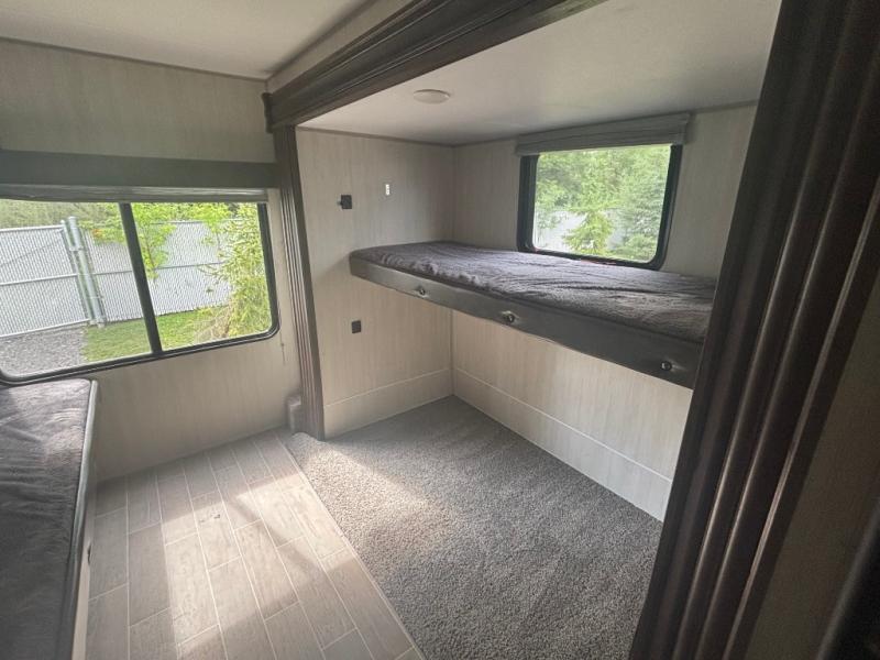 This is the ultimate family-friendly travel trailer! You will love all of the space inside this Cherokee travel trailer. From the three slides to the rear private bunkhouse for your kids, there is room for everyone and everything! The kitchen features a large island with a sink, plus a U-shaped dinette for you to enjoy your meals at. Throughout this model there are overhead cabinets, optional 40" storage drawers under the dinette, and exterior storage compartments, and there is even a master suite up front so that you can take a moment to enjoy peace and quiet whenever you need.