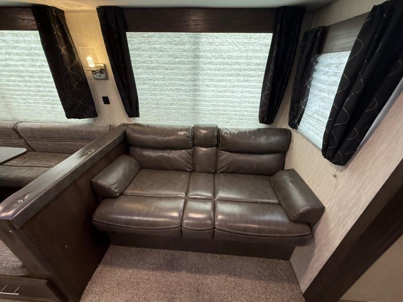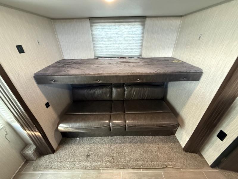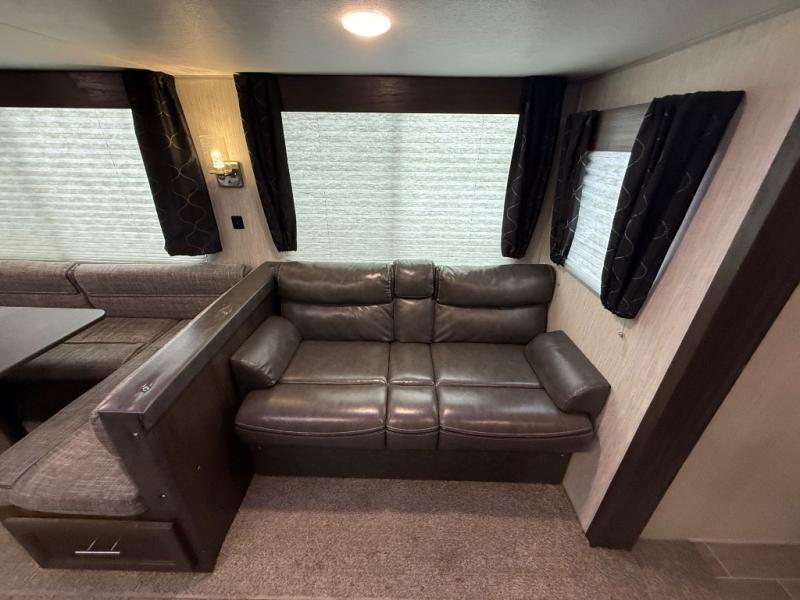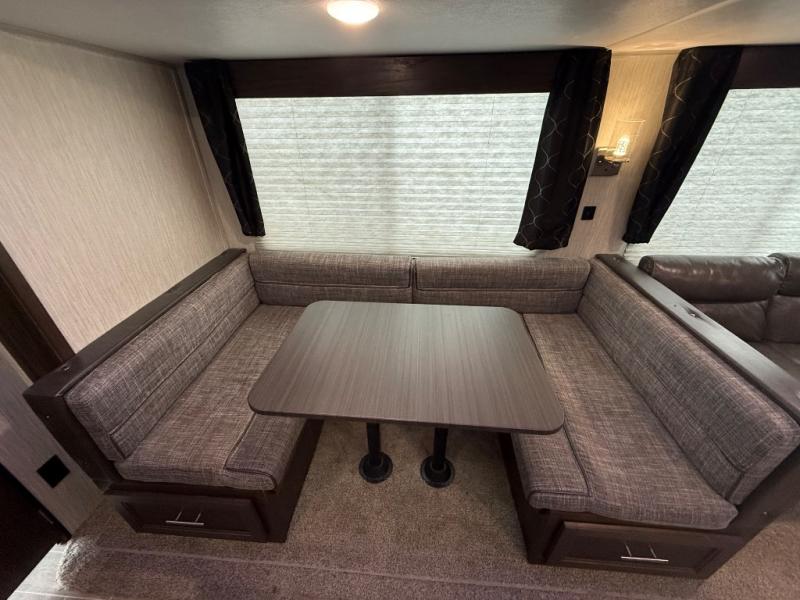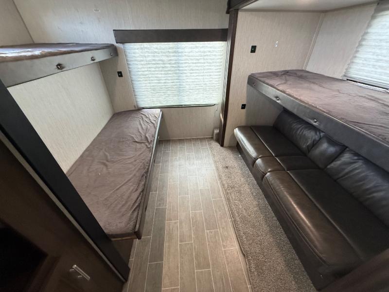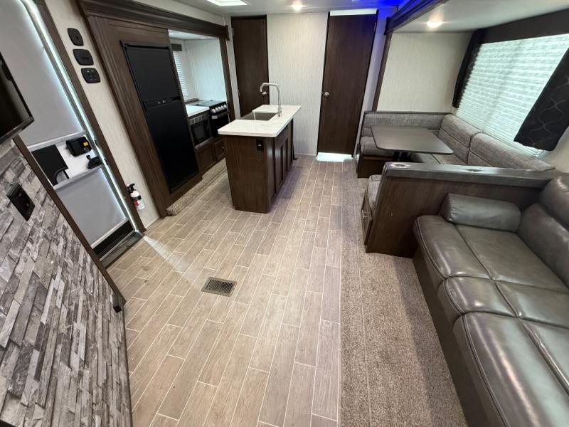 This is the ultimate family-friendly travel trailer! You will love all of the space inside this Cherokee travel trailer. From the three slides to the rear private bunkhouse for your kids, there is room for everyone and everything! The kitchen features a large island with a sink, plus a U-shaped dinette for you to enjoy your meals at. Throughout this model there are overhead cabinets, optional 40" storage drawers under the dinette, and exterior storage compartments, and there is even a master suite up front so that you can take a moment to enjoy peace and quiet whenever you need.