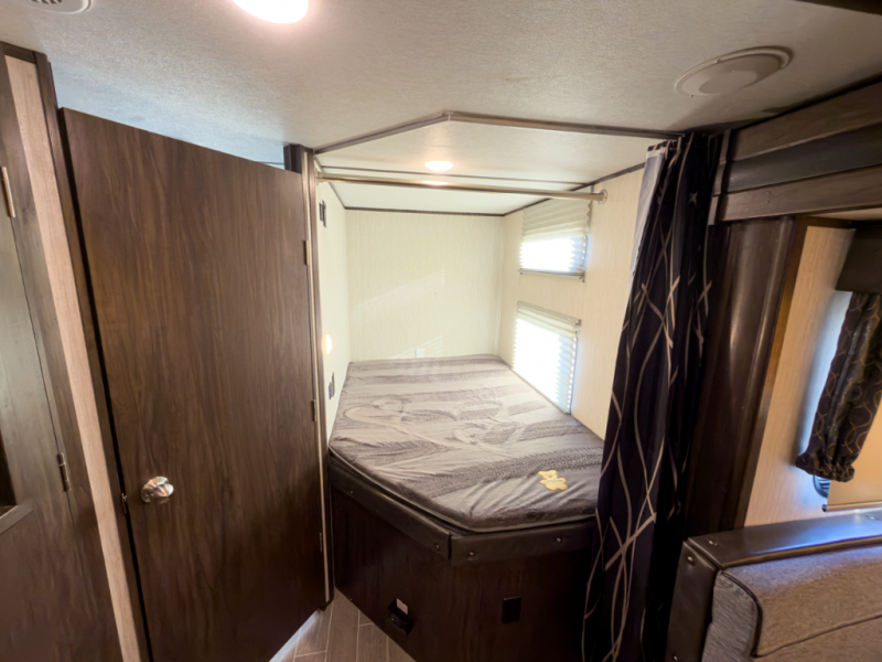 This Cherokee Alpha Wolf travel trailer will not only be your family's favorite unit to take on every upcoming getaway, but it will also be everyone else's favorite thanks to the double entry doors. This extravagant model is able to sleep ten people because of the set of double-size bunks, the queen-size bed in the front private bedroom, and the Super U-shaped dinette, plus there is a jackknife sofa. With two entry doors, you have easy access into the trailer as you load up for the adventures ahead or unload once you've returned home, and the walk-in pantry is a big help in storing all of your canned goods and non-perishables so that they are ready to go when it is time to prepare dinner.