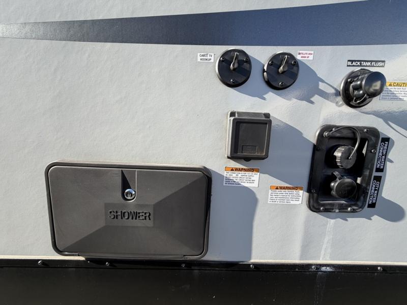 The Cherokee Alpha Wolf travel trailer is the first of Cherokee's line up to be fully laminated, which makes them lightweight, well insulated, and able to provide a sleek and modern exterior. The tire pressure monitoring system and exterior shower with hot and cold water add to the usefulness and value of the Alpha Wolf, and the LED lighting on both the exterior and interior delivers a bright and cheerful atmosphere no matter what time of day it is. Inside of the Alpha Wolf you will find blackout kitchen appliances in the kitchen and plenty of storage for your pots and pans underneath the sink.