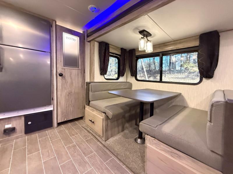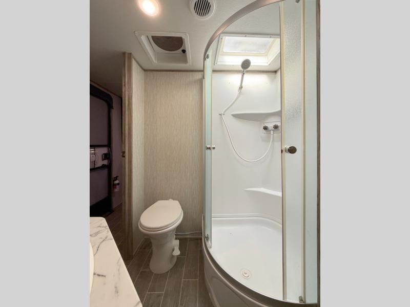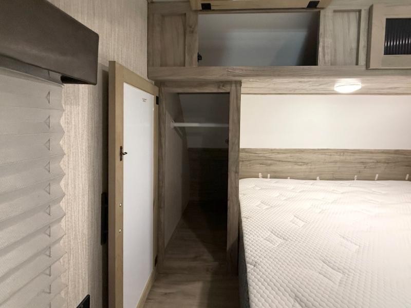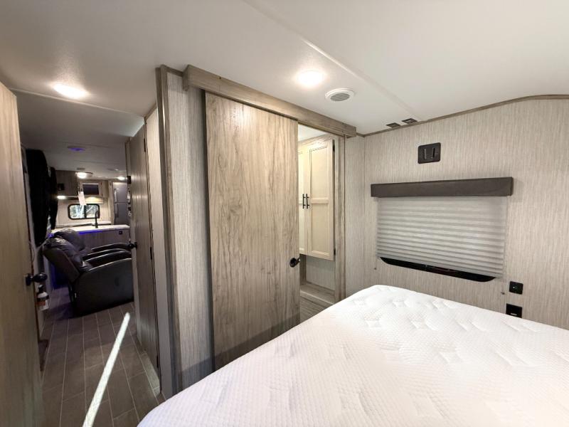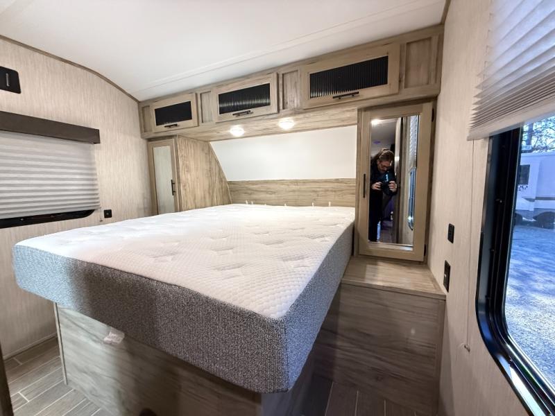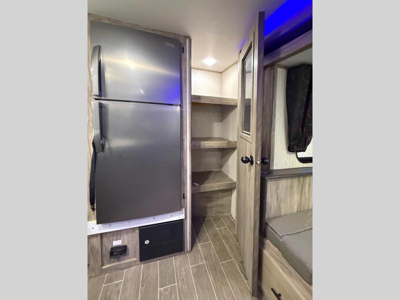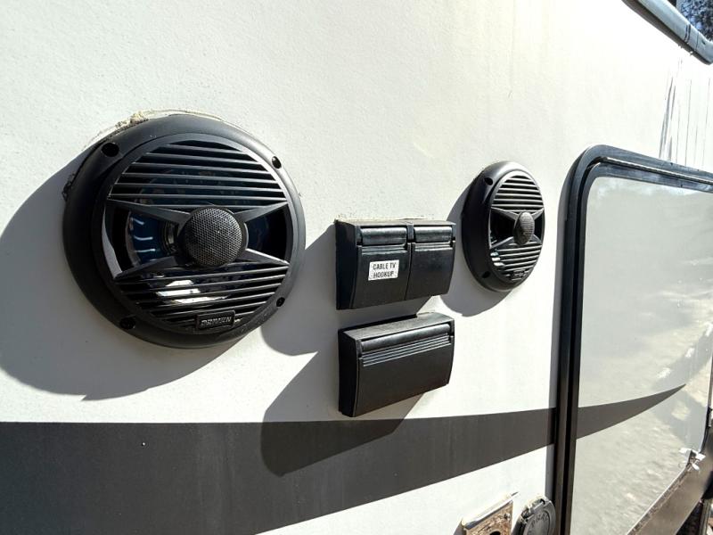 This Cherokee Alpha Wolf travel trailer is excellent for a smaller family or group of individuals who are looking to explore the country without losing the comforts of home. With a full kitchen and large pantry, you will find it easy to prepare dinner each evening, and the single slide that houses the booth dinette and sofa give you extra space to sit and chat with the chef. You will achieve complete relaxation on the queen-size bed in the front master suite, and the private bathroom entrance will allow you to quickly and conveniently get ready each morning.