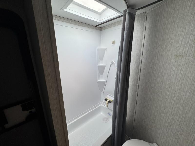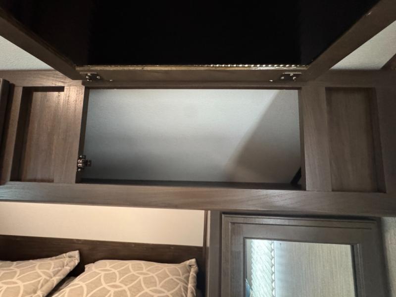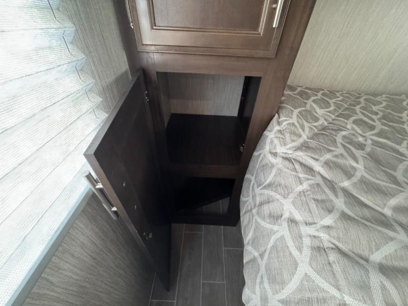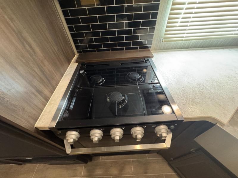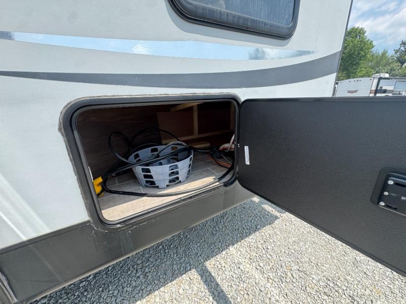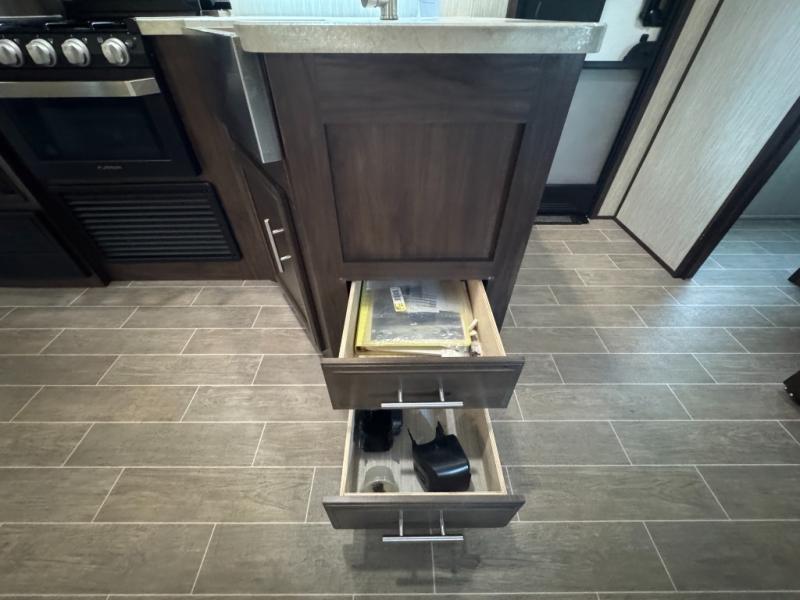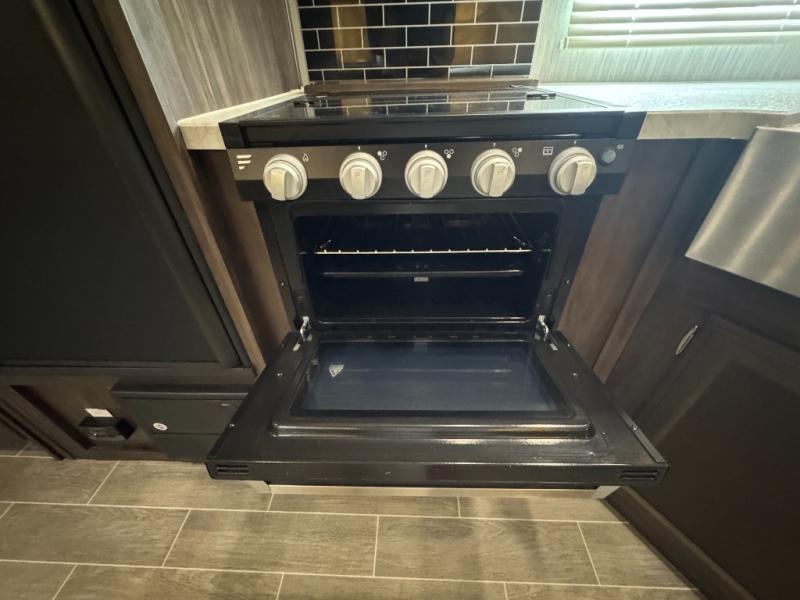 The Cherokee Alpha Wolf travel trailer is the first of Cherokee's line up to be fully laminated, which makes them lightweight, well insulated, and able to provide a sleek and modern exterior. The tire pressure monitoring system and exterior shower with hot and cold water add to the usefulness and value of the Alpha Wolf, and the LED lighting on both the exterior and interior delivers a bright and cheerful atmosphere no matter what time of day it is. Inside of the Alpha Wolf you will find blackout kitchen appliances in the kitchen and plenty of storage for your pots and pans underneath the sink.