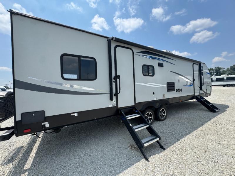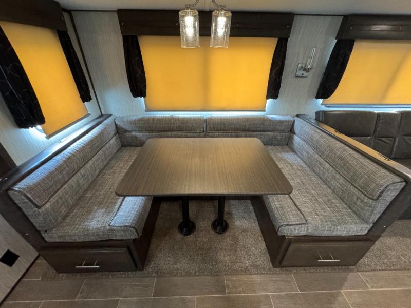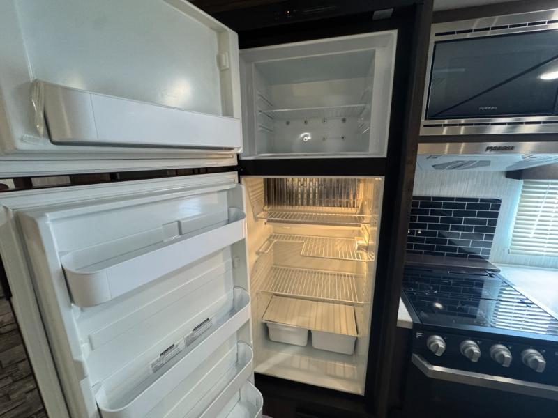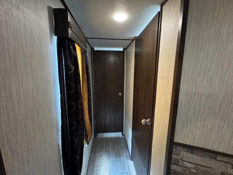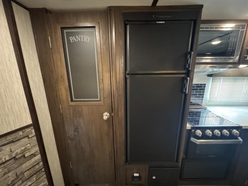 This Cherokee Alpha Wolf travel trailer is an amazing unit that delivers all of the things you love about your own home without making it feel as if you are towing a house. From the rear private bedroom with its queen-size bed and farm-style door, to the front master suite with its queen-size bed and private bathroom entrance, this unit delivers the privacy you need as you sleep each night and get ready each morning. Because this unit can sleep eight people, you will thoroughly appreciate all of the tools that come included in the full kitchen when it comes time to prepare enough food to feed everyone.