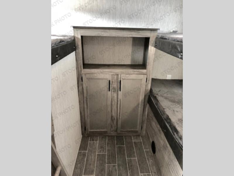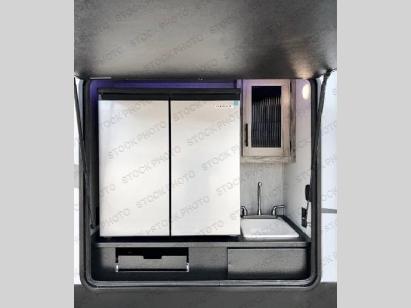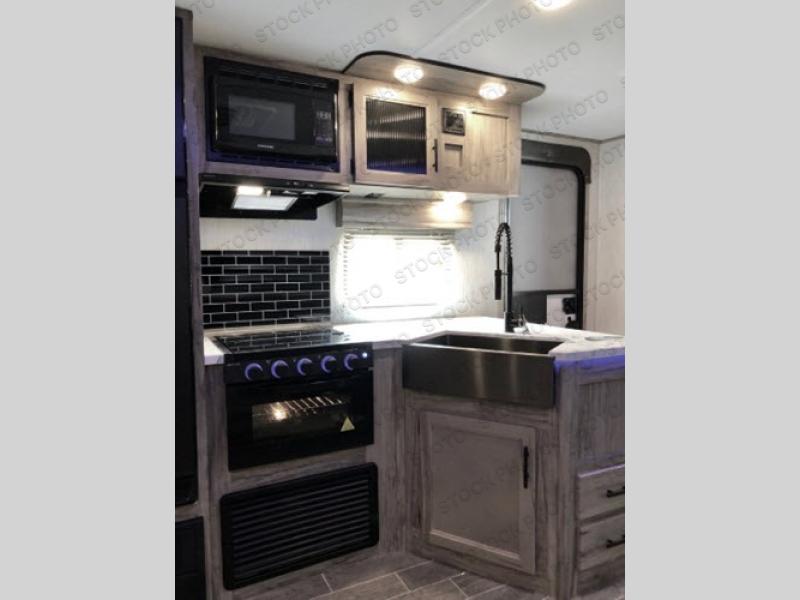 The Cherokee Alpha Wolf travel trailer is the first of Cherokee's line up to be fully laminated, which makes them lightweight, well insulated, and able to provide a sleek and modern exterior. The tire pressure monitoring system and exterior shower with hot and cold water add to the usefulness and value of the Alpha Wolf, and the LED lighting on both the exterior and interior delivers a bright and cheerful atmosphere no matter what time of day it is. Inside of the Alpha Wolf you will find blackout kitchen appliances in the kitchen and plenty of storage for your pots and pans underneath the sink.