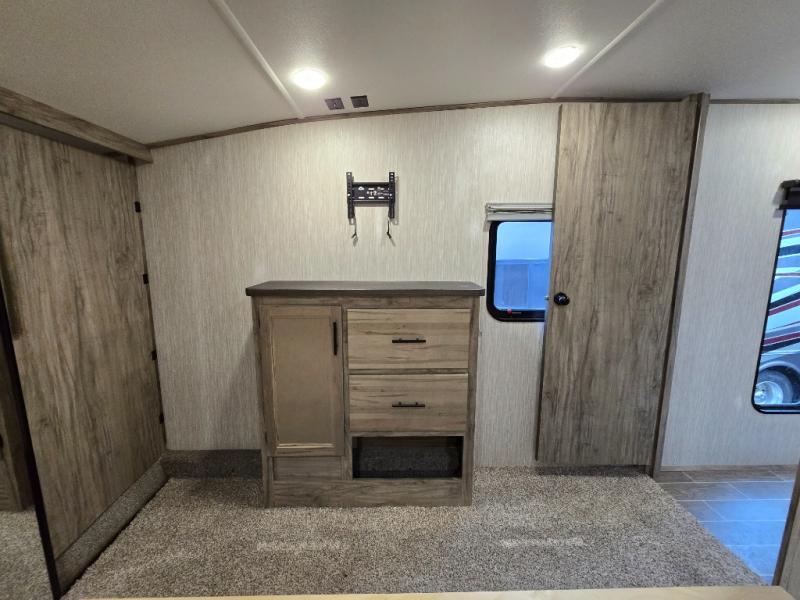 With any Cherokee Arctic Wolf Suite by Forest River you can be sure you're getting a fifth wheel packed with amenities. The NXG frame technology provides a lightweight, yet strong foundation for your unit and the forced air heated and enclosed underbelly along with the Insulator Series woof roof and floor superstructure will allow you to comfortably camp in any season. Inside you'll enjoy LED lighting, seamless counter tops, multiple USB stations, and a Nautilus style shower with a retractable door just to name a few features. Each unit also includes an outside shower with hot and cold water, backup camera prep, and a Arctic "Step Above" entry step, plus many more comforts to make every camping experience an enjoyable one.