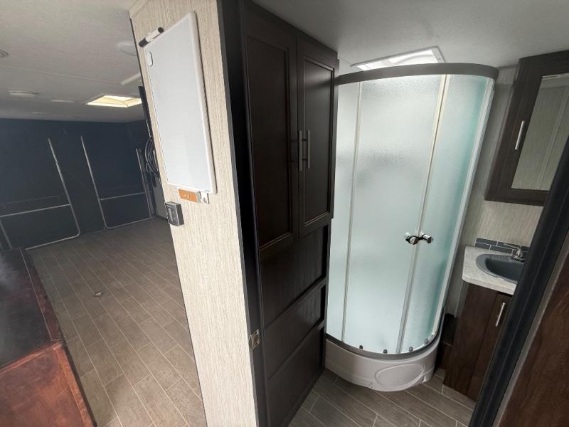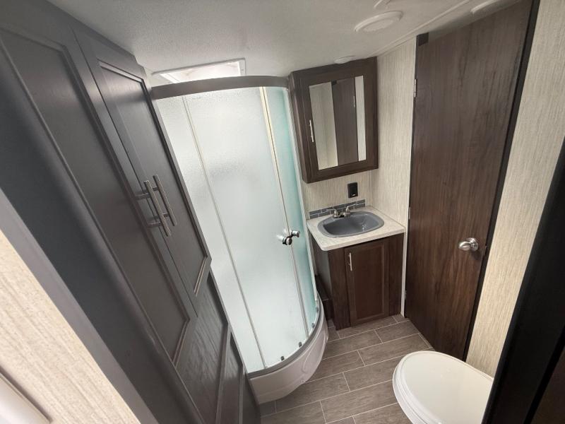 All Forest River Cherokee Grey Wolf models are quality built with distinct features and superior comfort in mind, and they are all set at an affordable price point. So, when you get the opportunity to escape the hustle and bustle of everyday life to enjoy all the beauty and wonder that an outdoor adventure holds, the Cherokee Grey Wolf is ready and waiting to help you relax and unwind. Each unit features an outdoor shower with hot and cold water for you to get cleaned up without tracking mud throughout after your adventurous hike, and with the RVQ quick connect, you can easily hook up a low-pressure grill to cook up your best burgers outdoors. Inside, you will enjoy the HDMI entertainment center, the LED lighting throughout, and a kitchen skylight with a shade, and if you get tired of being indoors during inclement weather, the outdoor power awning will provide protection.