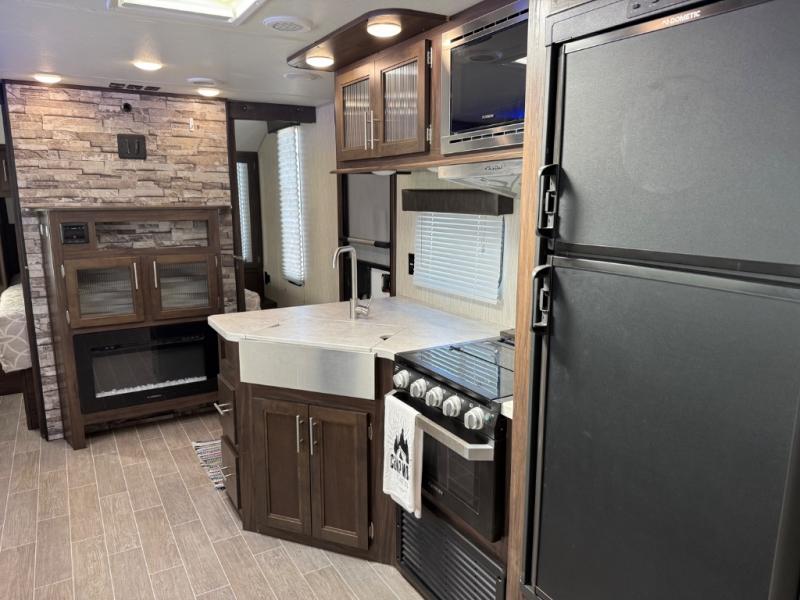 All Forest River Cherokee Grey Wolf models are quality built with distinct features and superior comfort in mind, and they are all set at an affordable price point. So, when you get the opportunity to escape the hustle and bustle of everyday life to enjoy all the beauty and wonder that an outdoor adventure holds, the Cherokee Grey Wolf is ready and waiting to help you relax and unwind. Each unit features an outdoor shower with hot and cold water for you to get cleaned up without tracking mud throughout after your adventurous hike, and with the RVQ quick connect, you can easily hook up a low-pressure grill to cook up your best burgers outdoors. Inside, you will enjoy the HDMI entertainment center, the LED lighting throughout, and a kitchen skylight with a shade, and if you get tired of being indoors during inclement weather, the outdoor power awning will provide protection.