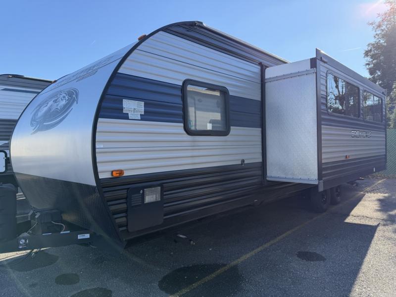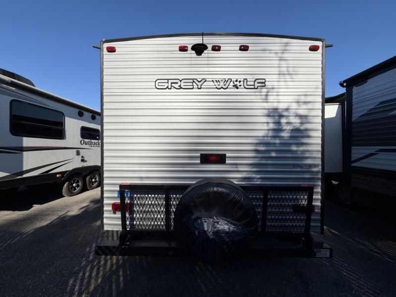 All Forest River Cherokee Grey Wolf models are quality built with distinct features and superior comfort in mind, and they are all set at an affordable price point. So, when you get the opportunity to escape the hustle and bustle of everyday life to enjoy all the beauty and wonder that an outdoor adventure holds, the Cherokee Grey Wolf is ready and waiting to help you relax and unwind. Each unit features an outdoor shower with hot and cold water for you to get cleaned up without tracking mud throughout after your adventurous hike, and with the RVQ quick connect, you can easily hook up a low-pressure grill to cook up your best burgers outdoors. Inside, you will enjoy the HDMI entertainment center, the LED lighting throughout, and a kitchen skylight with a shade, and if you get tired of being indoors during inclement weather, the outdoor power awning will provide protection.