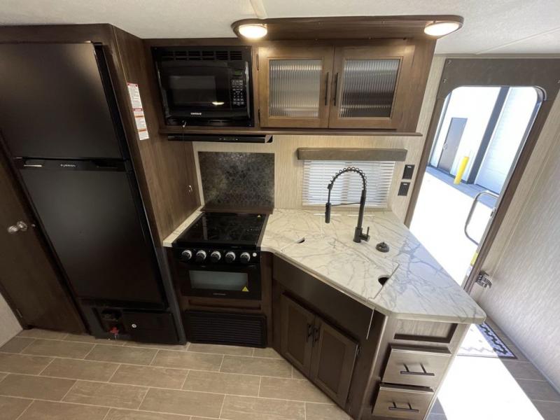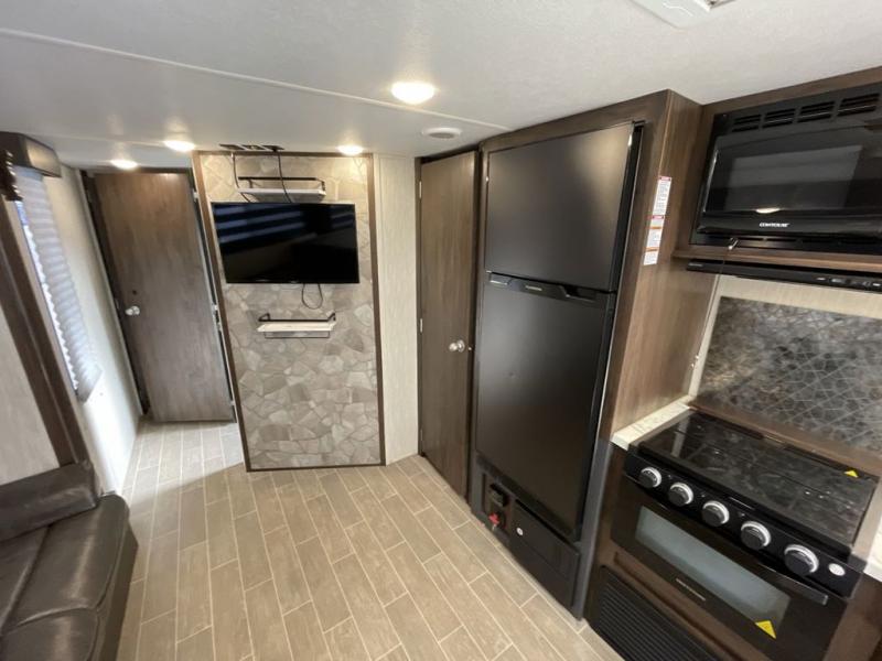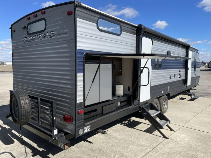 All Forest River Cherokee Grey Wolf models are quality built with distinct features and superior comfort in mind, and they are all set at an affordable price point. So, when you get the opportunity to escape the hustle and bustle of everyday life to enjoy all the beauty and wonder that an outdoor adventure holds, the Cherokee Grey Wolf is ready and waiting to help you relax and unwind. Each unit features an outdoor shower with hot and cold water for you to get cleaned up without tracking mud throughout after your adventurous hike, and with the RVQ quick connect, you can easily hook up a low-pressure grill to cook up your best burgers outdoors. Inside, you will enjoy the HDMI entertainment center, the LED lighting throughout, and a kitchen skylight with a shade, and if you get tired of being indoors during inclement weather, the outdoor power awning will provide protection.