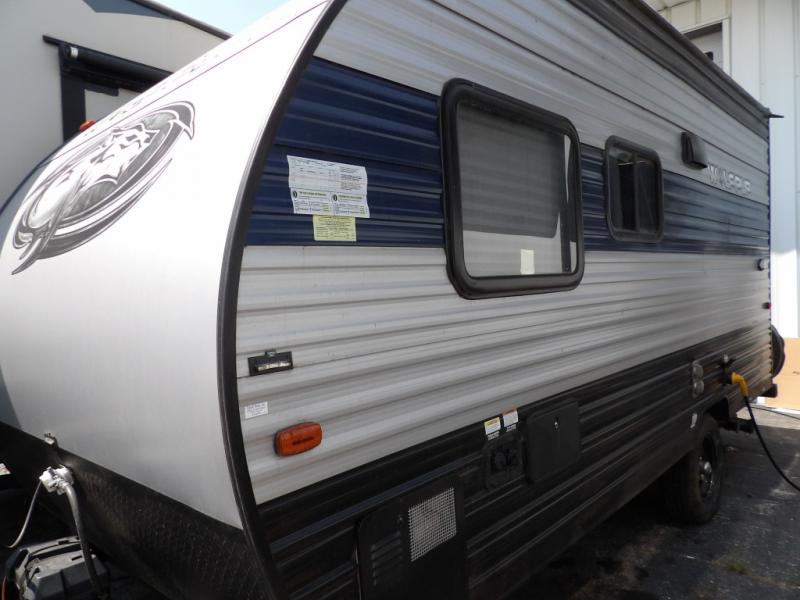 The Cherokee Wolf Pup travel trailer and toy hauler by Forest River are lightweight and easy to tow with ample storage for all your things. The aerodynamic radius front profile allows for better gas mileage, and the one-piece walkable decked roof allows you to easily clean off the unit after a fun weekend. You'll enjoy features such as USB charging stations to keep everyone's phones charged, a power awning with an LED light strip allowing you to stay outside longer, a seamless countertop, and an outside shower with hot and cold water to clean the dishes or even yourself, plus more! Pick the floorplan that works best for you, and start camping tomorrow!