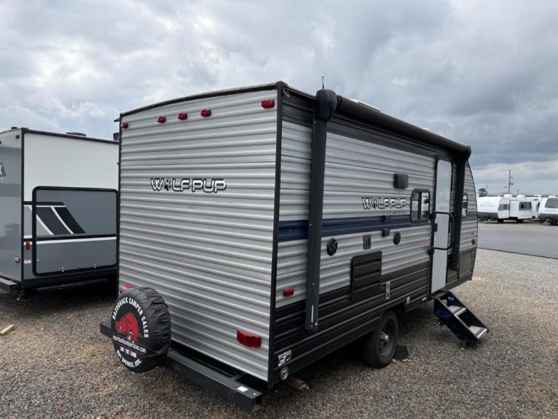The Cherokee Wolf Pup travel trailer and toy hauler by Forest River are lightweight and easy to tow with ample storage for all your things. The aerodynamic radius front profile allows for better gas mileage, and the one-piece walkable decked roof allows you to easily clean off the unit after a fun weekend. You'll enjoy features such as USB charging stations to keep everyone's phones charged, a power awning with an LED light strip allowing you to stay outside longer, a seamless countertop, and an outside shower with hot and cold water to clean the dishes or even yourself, plus more! Pick the floorplan that works best for you, and start camping tomorrow!