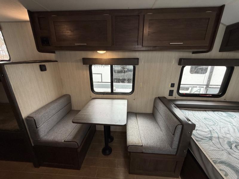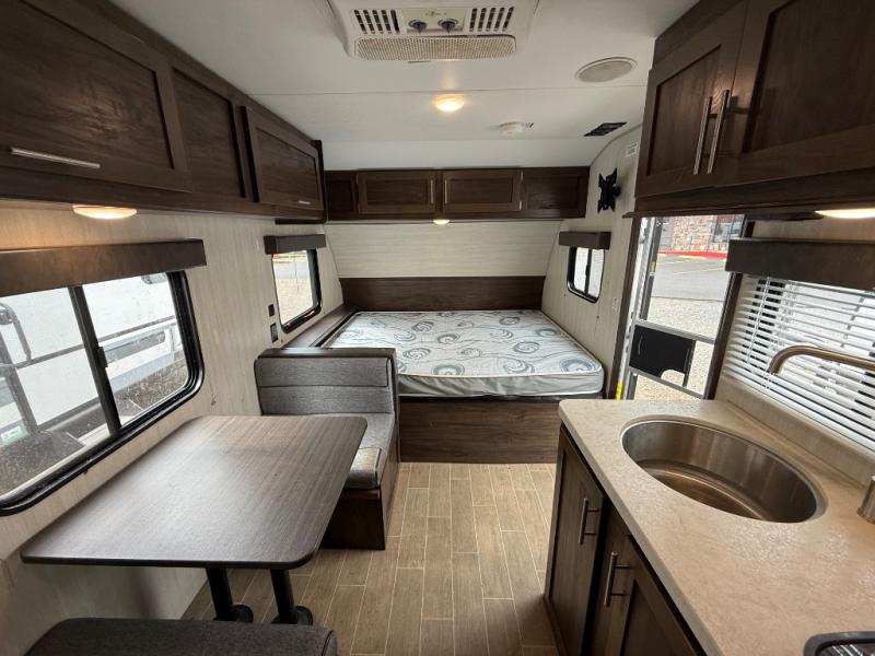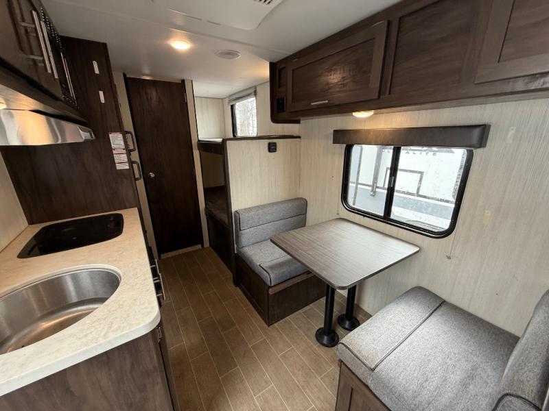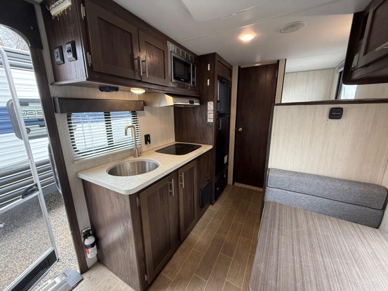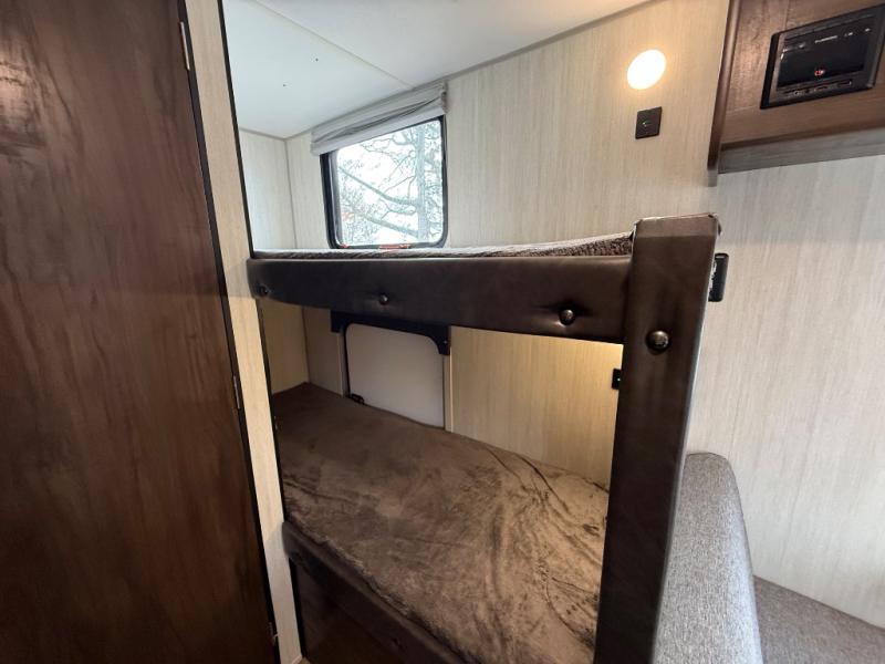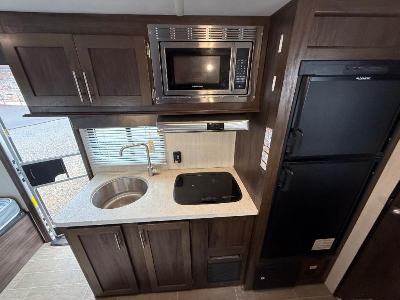 Imagine your kids on the rear bunk beds and you are enjoying the front queen bed before everyone gets up to make breakfast and head out for a hike. The kitchen includes a cooktop and microwave, as well as a refrigerator to store your leftovers, and a sink to wash the dishes. You will find storage in the pantry, and overhead cabinets throughout including above the queen bed. Start hiking today!