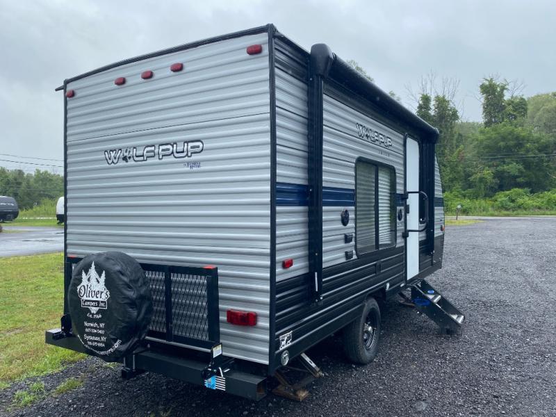 The Cherokee Wolf Pup travel trailer and toy hauler by Forest River are lightweight and easy to tow with ample storage for all your things. The aerodynamic radius front profile allows for better gas mileage, and the one-piece walkable decked roof allows you to easily clean off the unit after a fun weekend. You'll enjoy features such as USB charging stations to keep everyone's phones charged, a power awning with an LED light strip allowing you to stay outside longer, a seamless countertop, and an outside shower with hot and cold water to clean the dishes or even yourself, plus more! Pick the floorplan that works best for you, and start camping tomorrow!