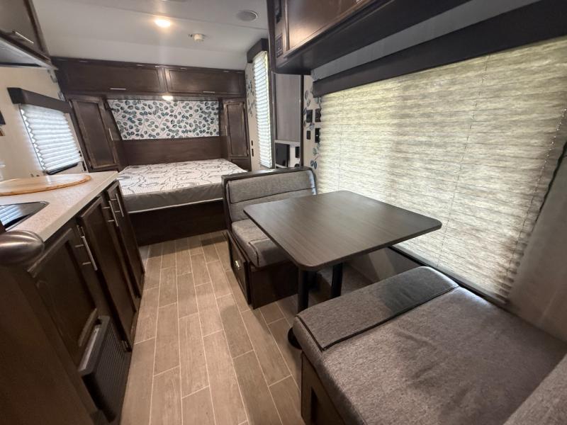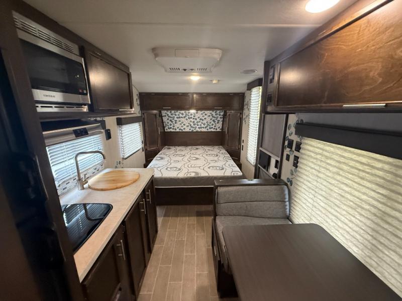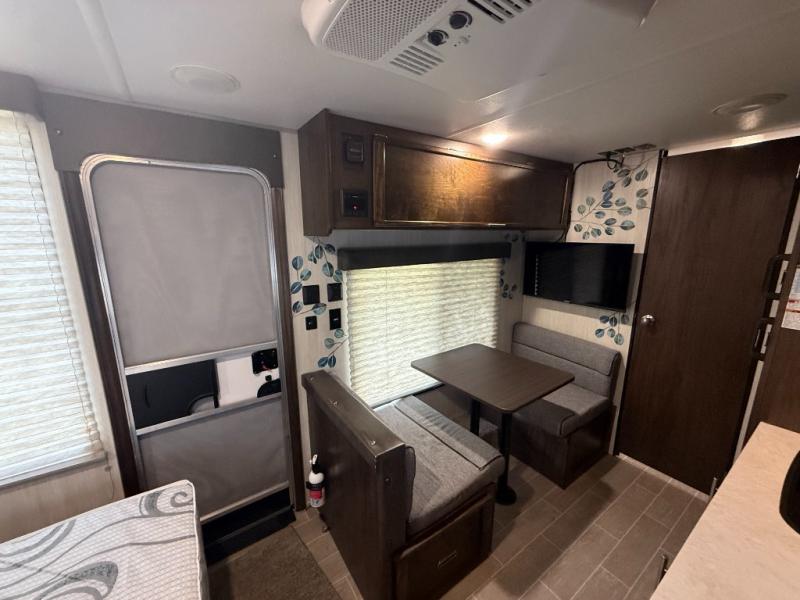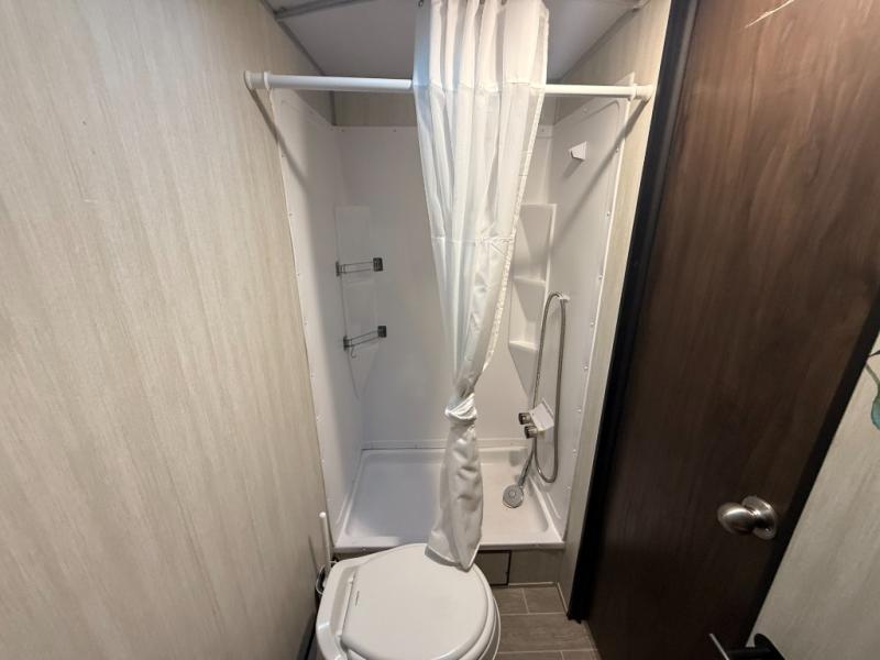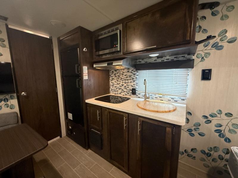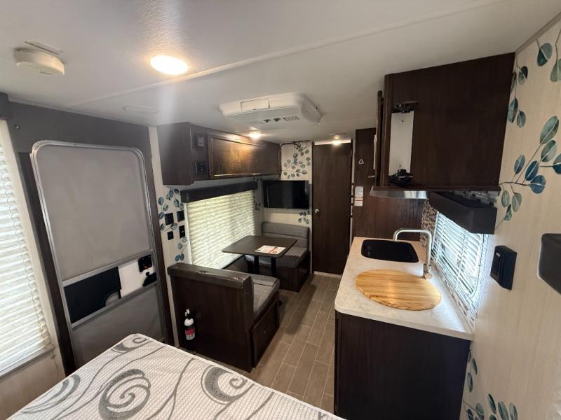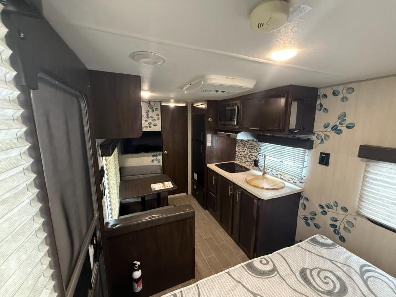 Whether you are a couple or a family that enjoys camping with your own accommodations, you will enjoy this trailer. From the Cherokee Sleep System with storage on each side and above, and the dinette that doubles as sleeping space for the kiddo, you can sleep on your own sheets each night. The full bathroom allows you to skip the public facilities, and the kitchen amenities will allow you to cook inside whenever you like. You will also find storage throughout the inside as well as along the exterior for your outdoor gear.