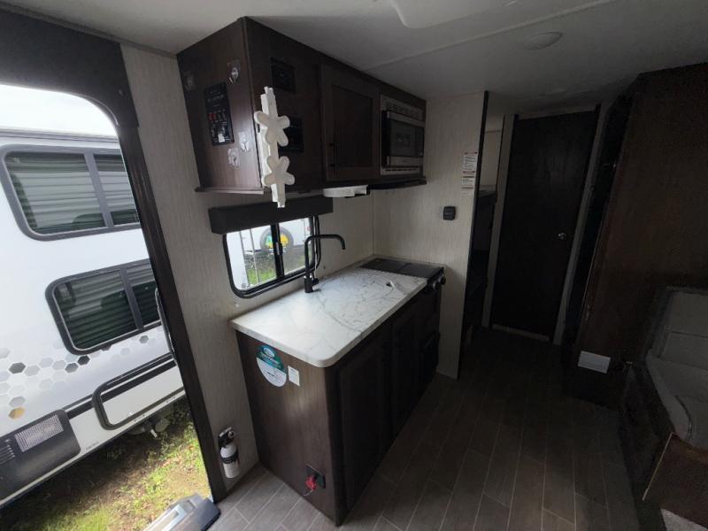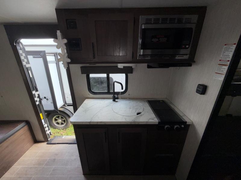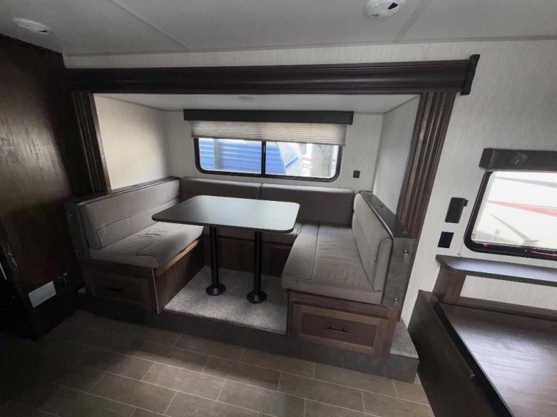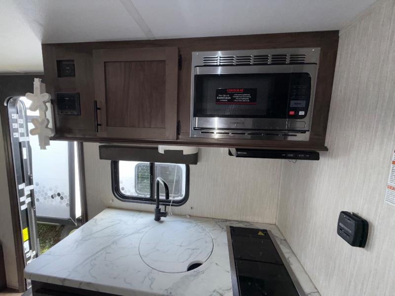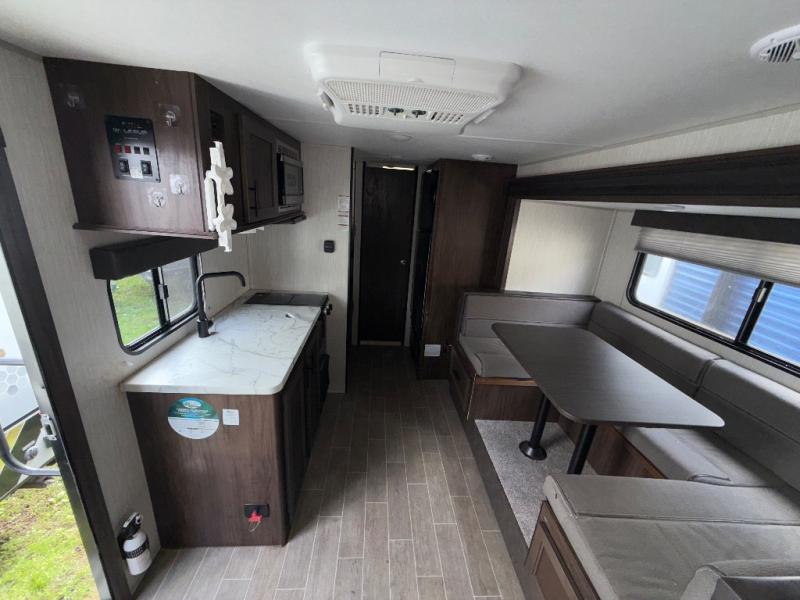 Get ready for some comfortable accommodations after you play outdoors with your RV friends at your favorite state park campsite. You can sit and talk under the power awning all night thanks to the LED light strip, or you can play games at the U-shaped dinette slide out. The dinette also doubles as extra sleeping space if your kids' friends want to stay the night. And everyone can enjoy some privacy when getting ready in the toilet and shower room. The chef will love having a cooktop and microwave to make meals and snacks, as well as a sink and counter space to clean up everything afterwards.