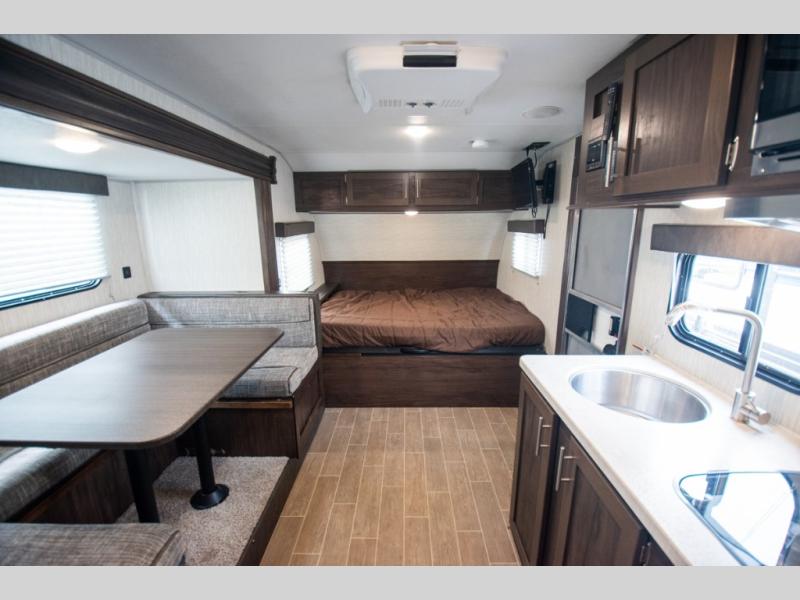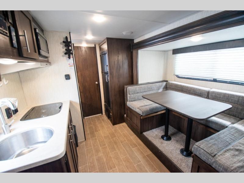 Get ready for some comfortable accommodations after you play outdoors with your RV friends at your favorite state park campsite. You can sit and talk under the power awning all night thanks to the LED light strip, or you can play games at the U-shaped dinette slide out. The dinette also doubles as extra sleeping space if your kids' friends want to stay the night. And everyone can enjoy some privacy when getting ready in the toilet and shower room. The chef will love having a cooktop and microwave to make meals and snacks, as well as a sink and counter space to clean up everything afterwards.