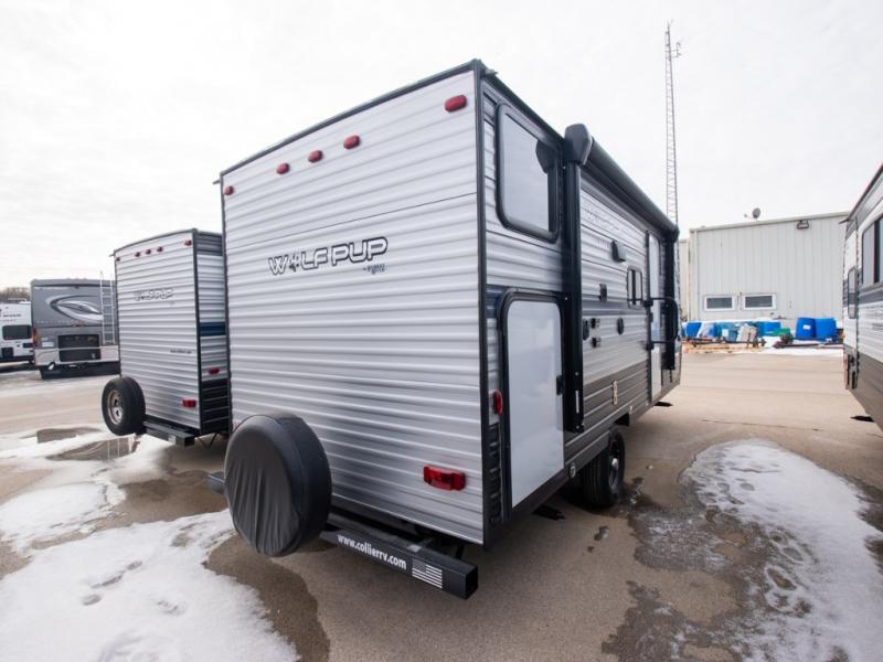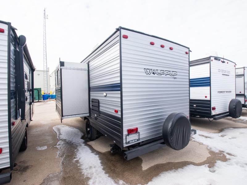 The Cherokee Wolf Pup travel trailer and toy hauler by Forest River are lightweight and easy to tow with ample storage for all your things. The aerodynamic radius front profile allows for better gas mileage, and the one-piece walkable decked roof allows you to easily clean off the unit after a fun weekend. You'll enjoy features such as USB charging stations to keep everyone's phones charged, a power awning with an LED light strip allowing you to stay outside longer, a seamless countertop, and an outside shower with hot and cold water to clean the dishes or even yourself, plus more! Pick the floorplan that works best for you, and start camping tomorrow!