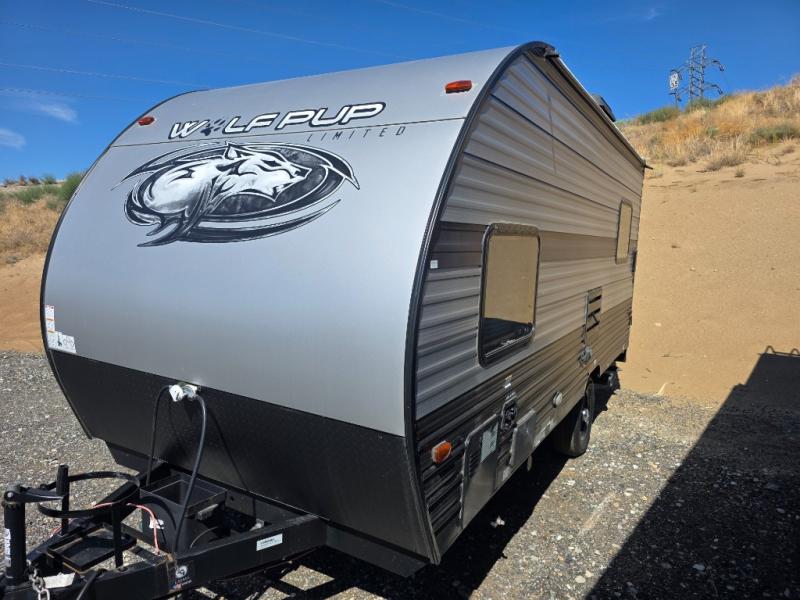 The Cherokee Wolf Pup travel trailer and toy hauler by Forest River are lightweight and easy to tow with ample storage for all your things. The aerodynamic radius front profile allows for better gas mileage, and the one-piece walkable decked roof allows you to easily clean off the unit after a fun weekend. You'll enjoy features such as USB charging stations to keep everyone's phones charged, a power awning with an LED light strip allowing you to stay outside longer, a seamless countertop, and an outside shower with hot and cold water to clean the dishes or even yourself, plus more! Pick the floorplan that works best for you, and start camping tomorrow!