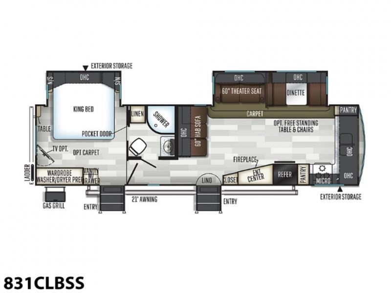 This Flagstaff Classic Super Lite model 831CLBSS is the ideal travel trailer for any couple. With double entry doors, it allows the fisherman to sneak out from the rear private bedroom in the morning without waking up the sleeper. You might even choose the patio door option if you want to enjoy more outdoor lighting inside. The front kitchen layout offers plenty of space to cook meals, some amazing views out of the front windshield, and an open area to visit with everyone on the 60" theater seats, the 60" hide-a-bed sofa, and the booth dinette. The fireplace will keep you warm while watching your favorite movie on the LCD TV after fishing, hiking, or walking around the campgrounds. The rear bedroom allows you to retire to a Serta king size bed and store all of your clothing and necessary items in the wardrobe and vanity. Plus, you can even add the optional washer/dryer to keep your clothes fresh throughout your entire trip!