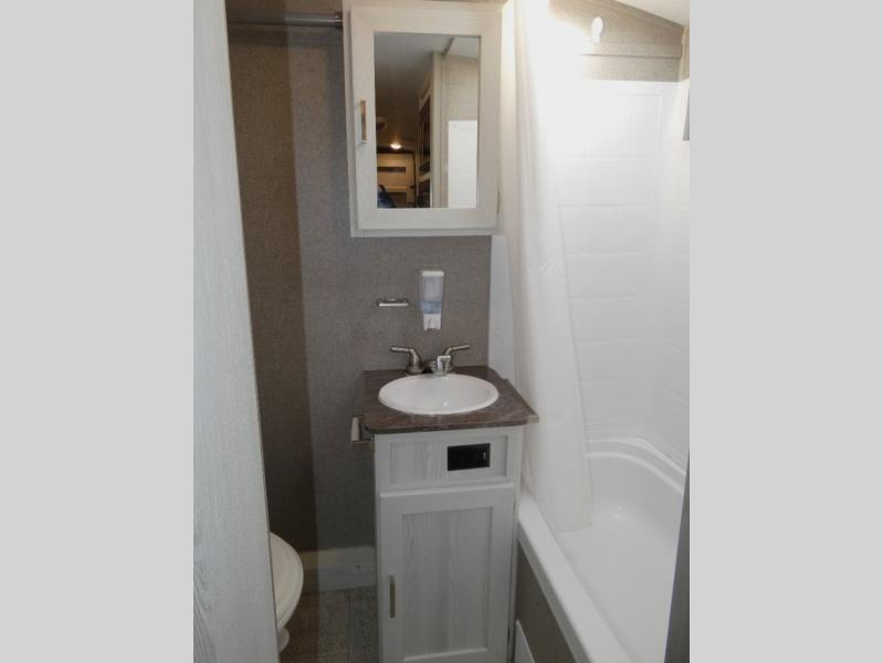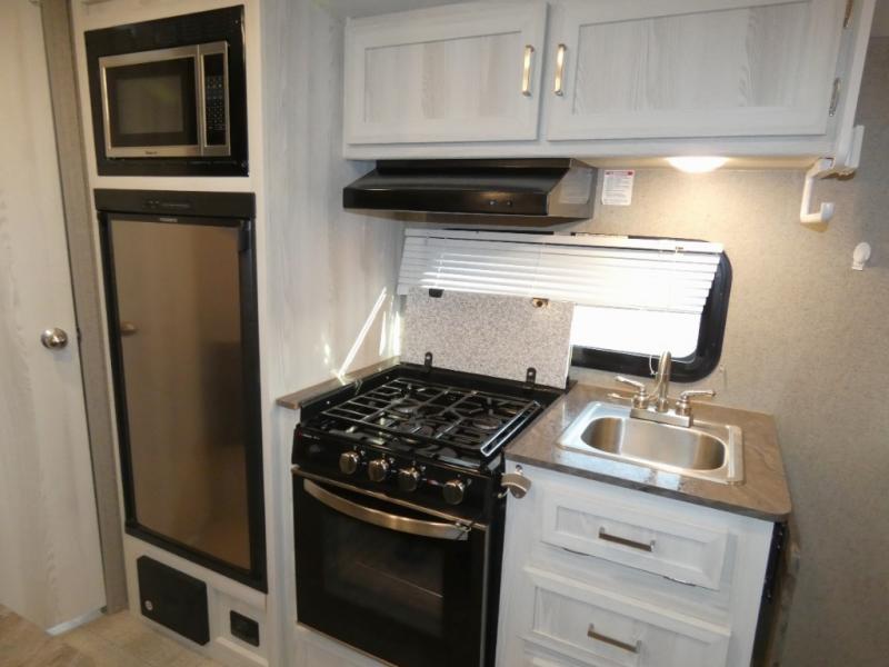 Ready, set, camp! For the camping enthusiast that appreciates convenience and full amenities, this Flagstaff E-Pro travel trailer is the one for you! You get to choose if you want to sit on the sofa or sleep on the Murphy bed whenever you like. You also have a booth dinette for extra seating and sleeping space. The rear full bath allows you to wash up after a fun day outdoors without having to use the public facilities, and you can cook inside on the cooktop and in the microwave.