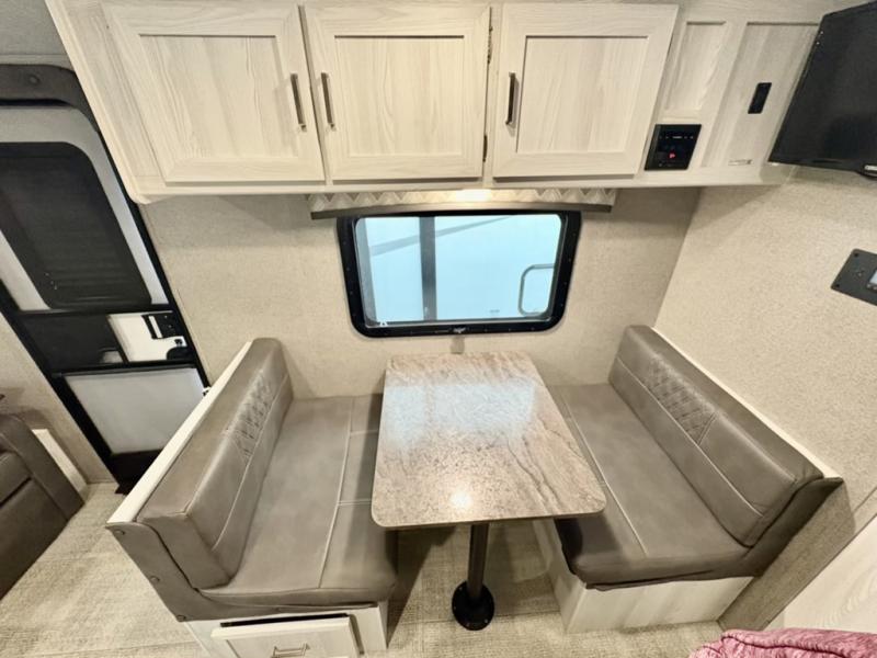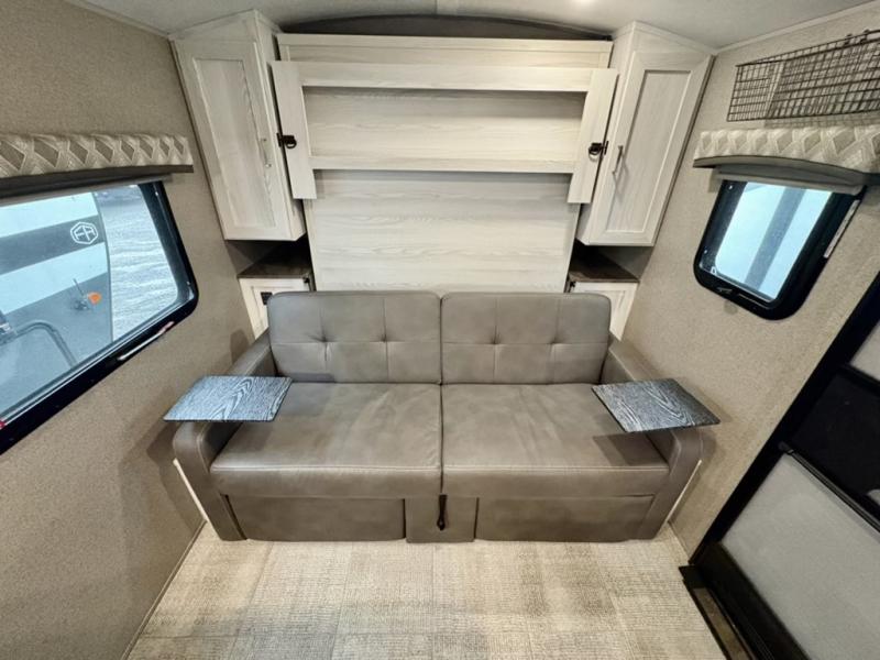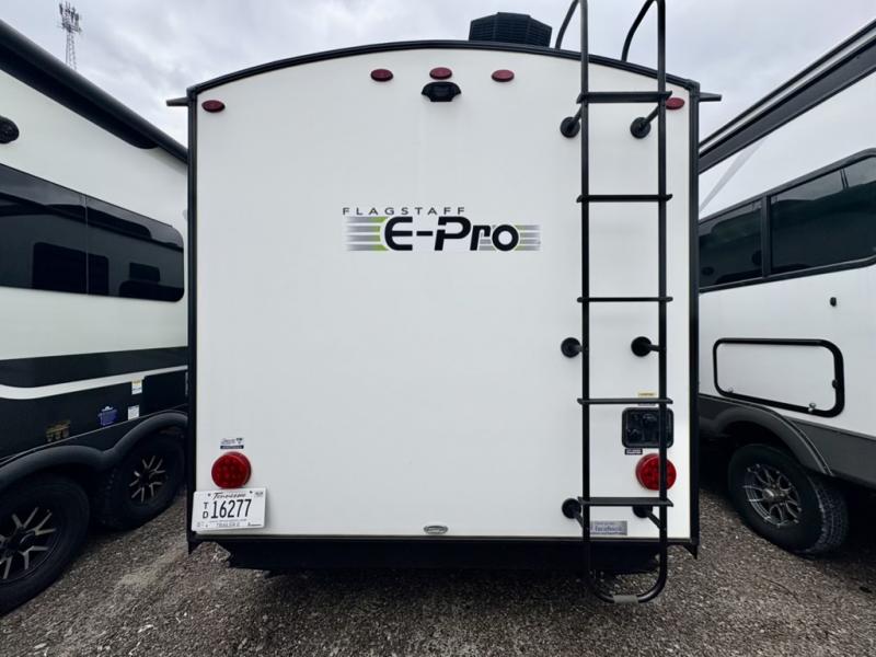 Ready, set, camp! For the camping enthusiast that appreciates convenience and full amenities, this Flagstaff E-Pro travel trailer is the one for you! You get to choose if you want to sit on the sofa or sleep on the Murphy bed whenever you like. You also have a booth dinette for extra seating and sleeping space. The rear full bath allows you to wash up after a fun day outdoors without having to use the public facilities, and you can cook inside on the cooktop and in the microwave or outside on the gas griddle.