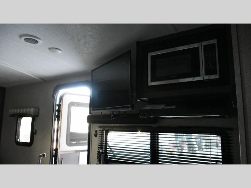 • Smart Kitchen Design – A three-burner cooktop, microwave, refrigerator, and deep pantry make it easy to prepare your favorite meals on the road. Every inch is designed for functionality and efficiency, so you’ll feel right at home.