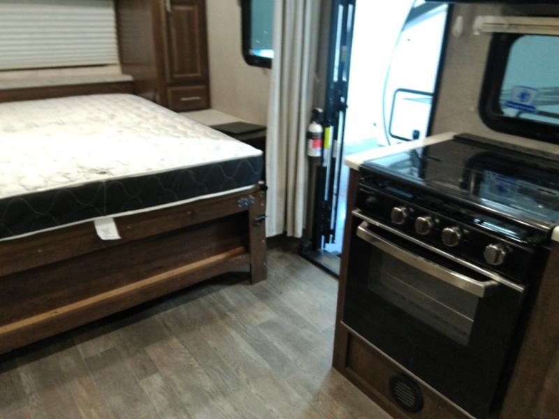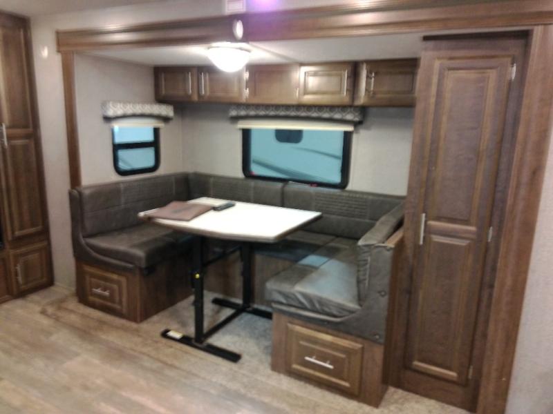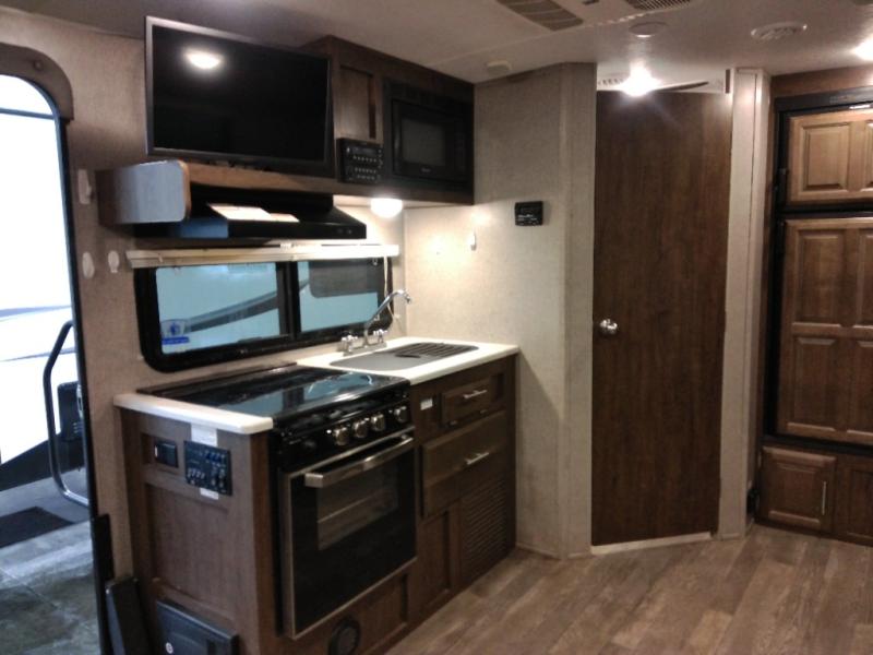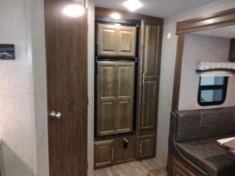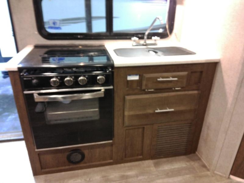 For any camping trip, you will want a Flagstaff Micro Lite travel trailer! These models have a beautiful Slatewood interior with hardwood cabinet doors and drawer fronts. Each unit features a WIFI Ranger Booster Sky 4 so that you can stay connected while you camp. Along the exterior there is a fully aluminium frame, an enclosed underbelly, and a radius roof with interior vaulted ceilings which provides you with the most headroom. Plus, an outside shower, outside speakers, and power awning with LED lights give added convenience to the exterior.