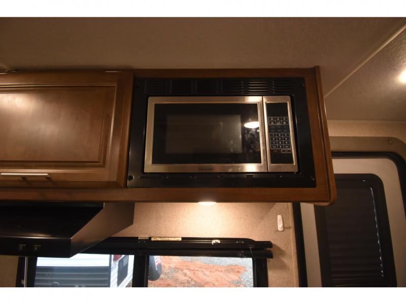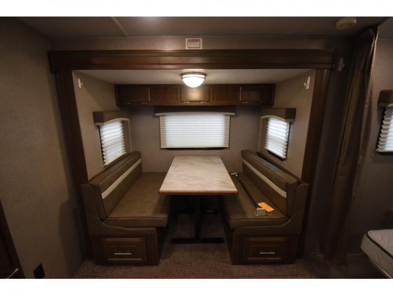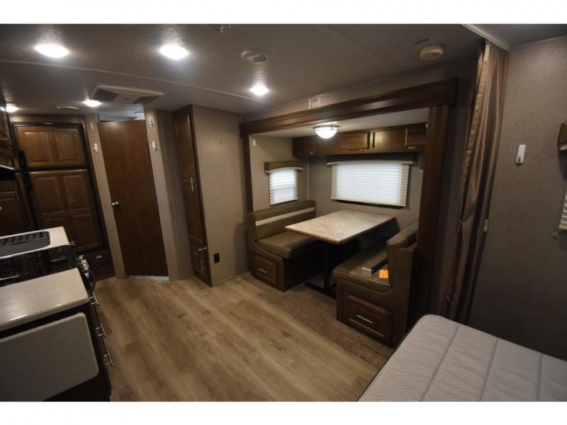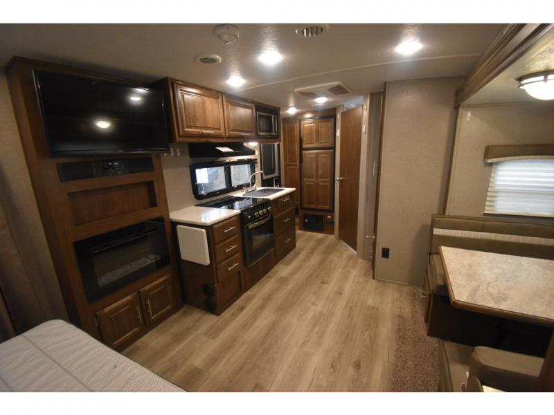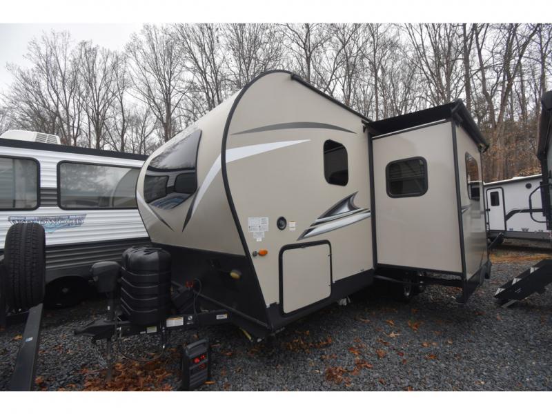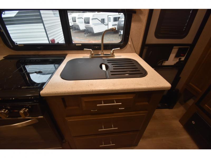 For any camping trip, you will want a Flagstaff Micro Lite travel trailer! These models have a beautiful Slatewood interior with hardwood cabinet doors and drawer fronts. Each unit features a WIFI Ranger Booster Sky 4 so that you can stay connected while you camp. Along the exterior there is a fully aluminium frame, an enclosed underbelly, and a radius roof with interior vaulted ceilings which provides you with the most headroom. Plus, an outside shower, outside speakers, and power awning with LED lights give added convenience to the exterior.