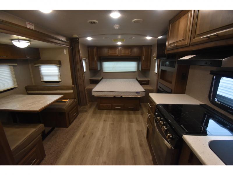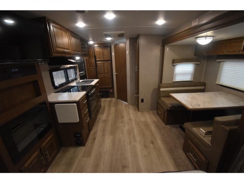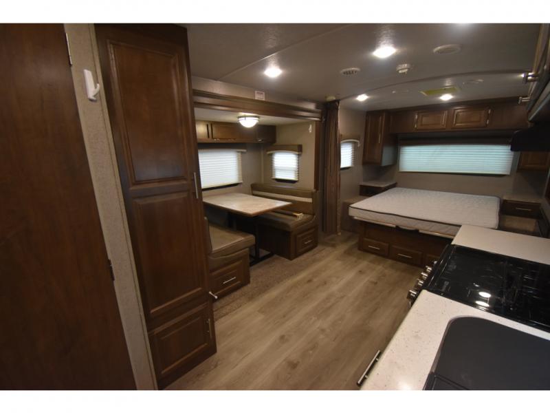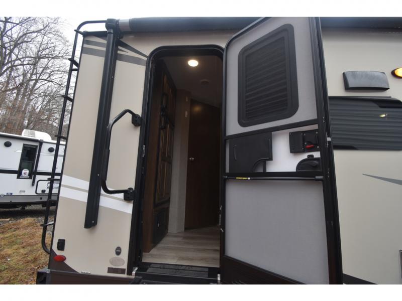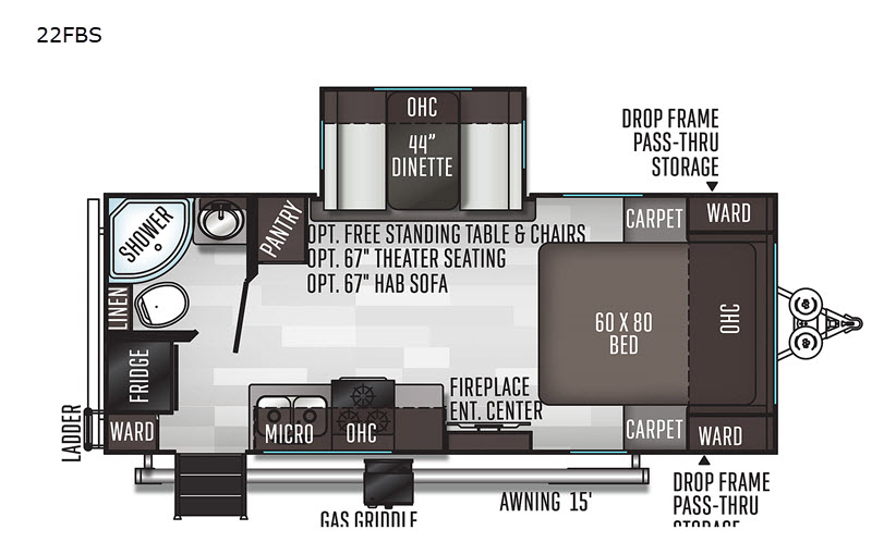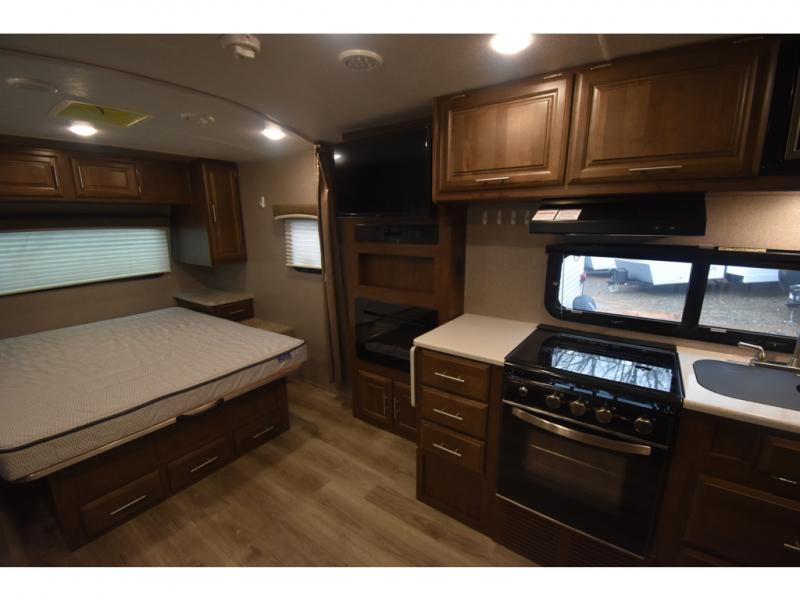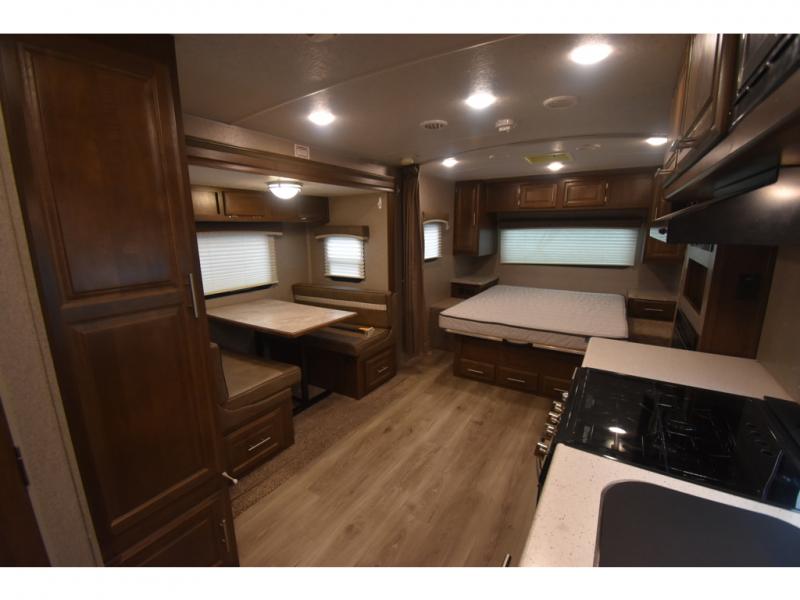 For any camping trip, you will want a Flagstaff Micro Lite travel trailer! These models have a beautiful Slatewood interior with hardwood cabinet doors and drawer fronts. Each unit features a WIFI Ranger Booster Sky 4 so that you can stay connected while you camp. Along the exterior there is a fully aluminium frame, an enclosed underbelly, and a radius roof with interior vaulted ceilings which provides you with the most headroom. Plus, an outside shower, outside speakers, and power awning with LED lights give added convenience to the exterior.