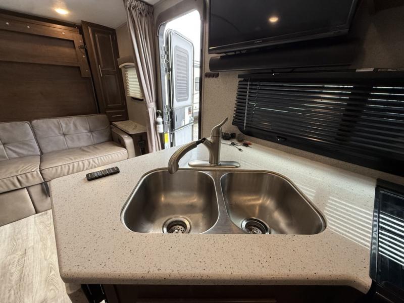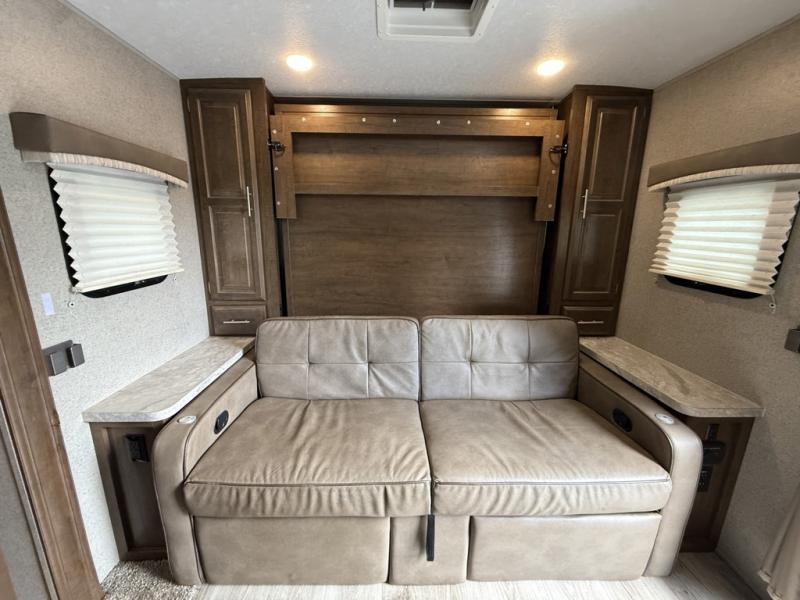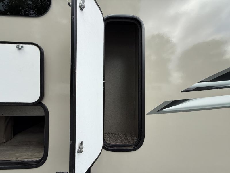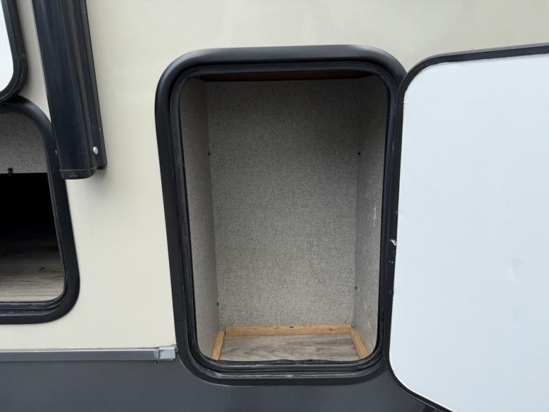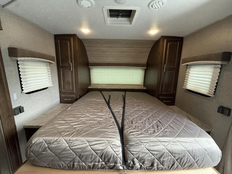 For any camping trip, you will want a Flagstaff Micro Lite travel trailer! These models have a beautiful Slatewood interior with hardwood cabinet doors and drawer fronts. Each unit features a WIFI Ranger Booster Sky 4 so that you can stay connected while you camp. Along the exterior there is a fully aluminium frame, an enclosed underbelly, and a radius roof with interior vaulted ceilings which provides you with the most headroom. Plus, an outside shower, outside speakers, and power awning with LED lights give added convenience to the exterior.