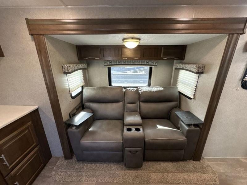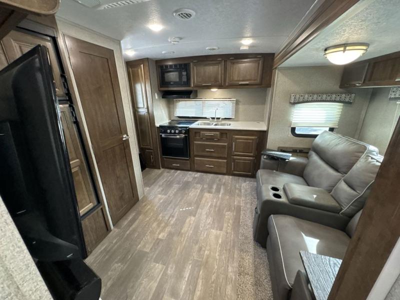 For any camping trip, you will want a Flagstaff Micro Lite travel trailer! These models have a beautiful Slatewood interior with hardwood cabinet doors and drawer fronts. Each unit features a WIFI Ranger Booster Sky 4 so that you can stay connected while you camp. Along the exterior there is a fully aluminium frame, an enclosed underbelly, and a radius roof with interior vaulted ceilings which provides you with the most headroom. Plus, an outside shower, outside speakers, and power awning with LED lights give added convenience to the exterior.
