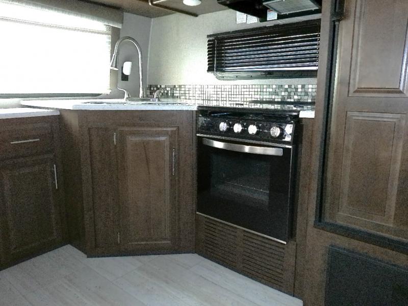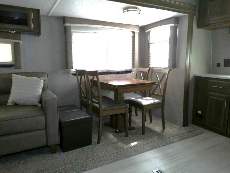 It will be easy to make plenty of memories with your family when you choose to camp with a Flagstaff Super Lite travel trailer by Forest River. These models have beautiful slatewood cabinetry with hardwood cabinet doors and drawer fronts, solid surface kitchen countertops, and ceiling LED 12 volt interior lighting. The 6 sided aluminum cage construction offers lightweight towing, the radius roof with interior vaulted ceilings give you more headroom, the WiFi ranger Wifi booster Sky 4, the enclosed underbelly, and the power awning with adjustable rain dump and LED light strip, will give you years of enjoyment!