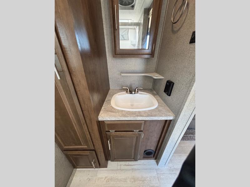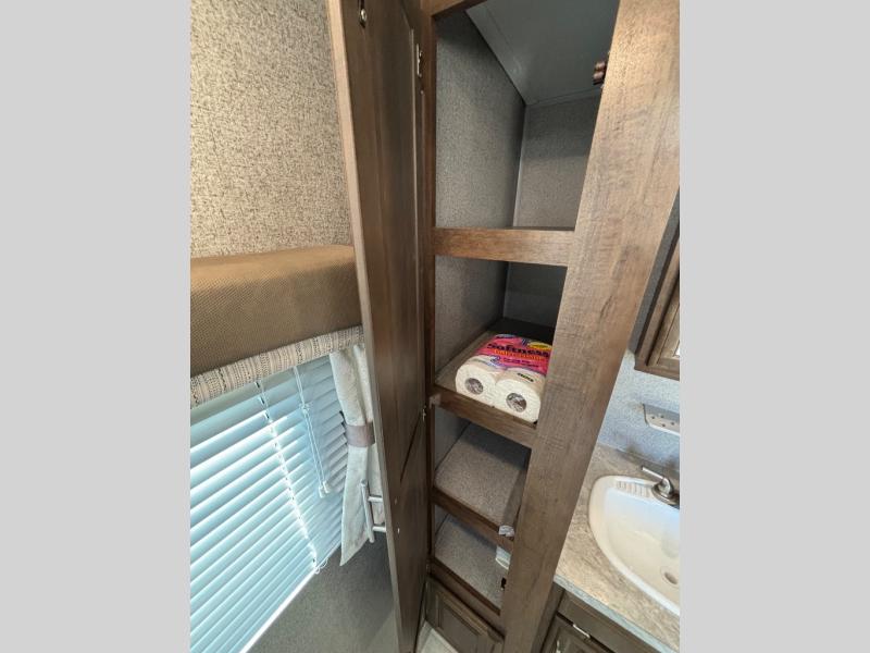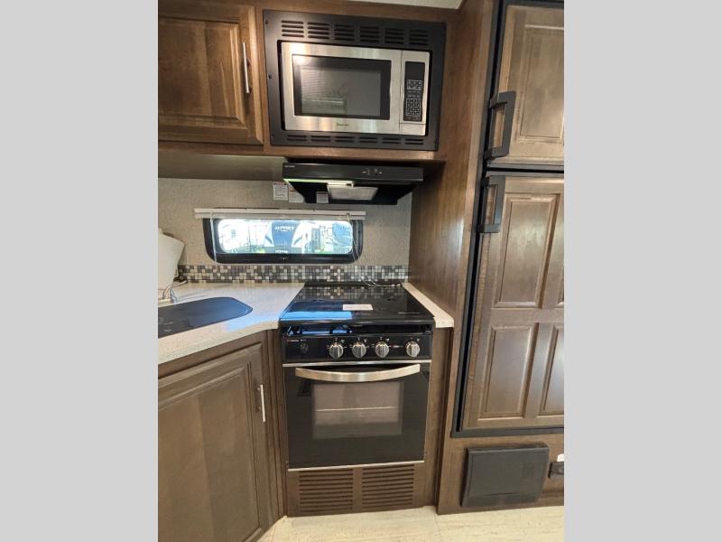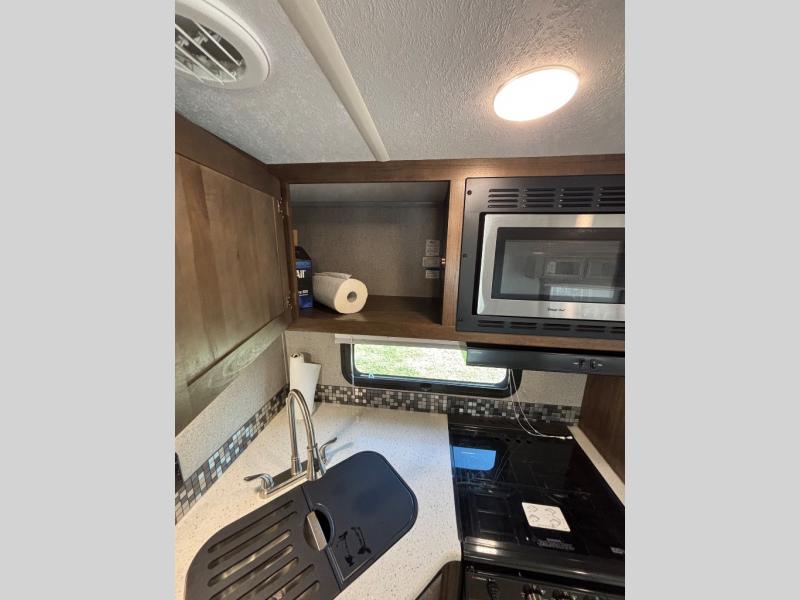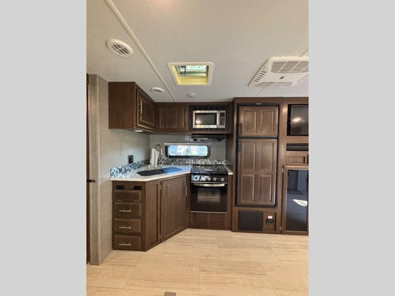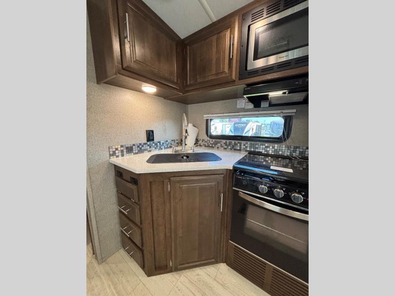 It will be easy to make plenty of memories with your family when you choose to camp with a Flagstaff Super Lite travel trailer by Forest River. These models have beautiful slatewood cabinetry with hardwood cabinet doors and drawer fronts, solid surface kitchen countertops, and ceiling LED 12 volt interior lighting. The 6 sided aluminum cage construction offers lightweight towing, the radius roof with interior vaulted ceilings give you more headroom, the WiFi ranger Wifi booster Sky 4, the enclosed underbelly, and the power awning with adjustable rain dump and LED light strip, will give you years of enjoyment!