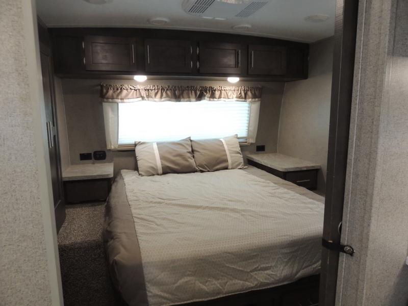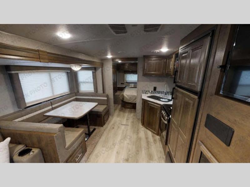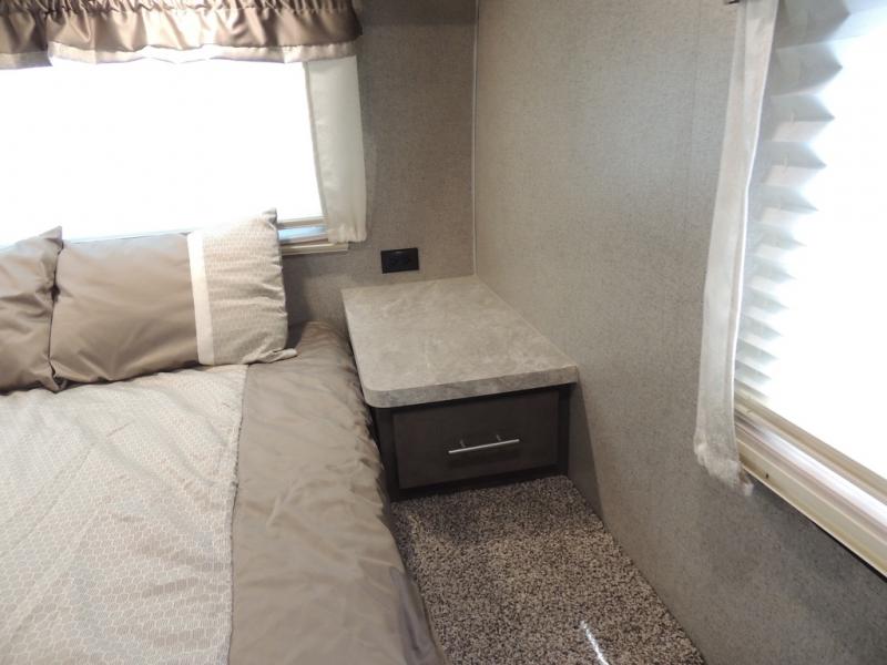 It will be easy to make plenty of memories with your family when you choose to camp with a Flagstaff Super Lite travel trailer by Forest River. These models have beautiful slatewood cabinetry with hardwood cabinet doors and drawer fronts, solid surface kitchen countertops, and ceiling LED 12 volt interior lighting. The 6 sided aluminum cage construction offers lightweight towing, the radius roof with interior vaulted ceilings give you more headroom, the WiFi ranger Wifi booster Sky 4, the enclosed underbelly, and the power awning with adjustable rain dump and LED light strip, will give you years of enjoyment!