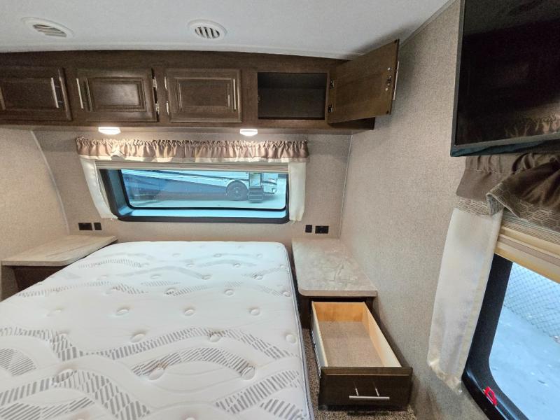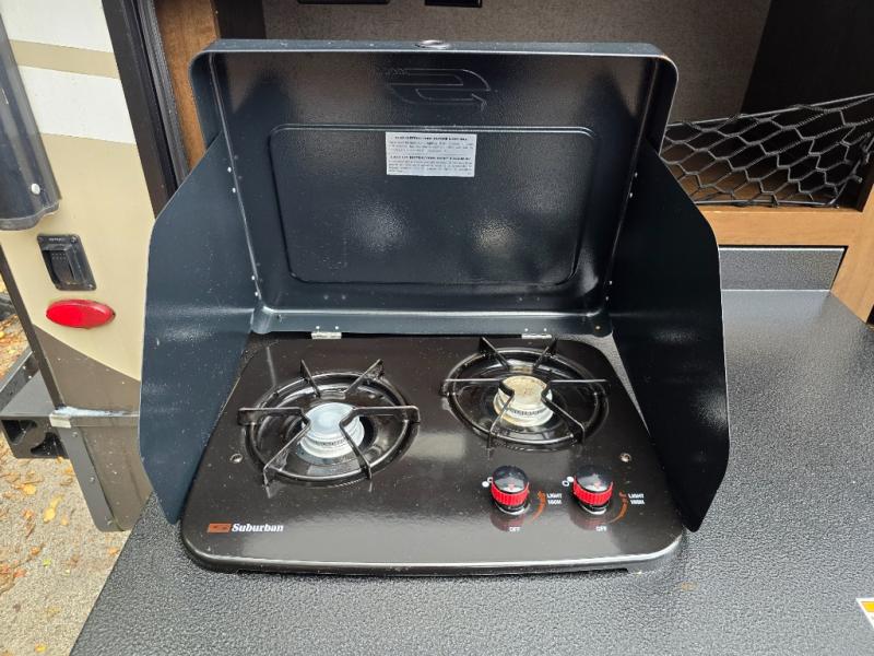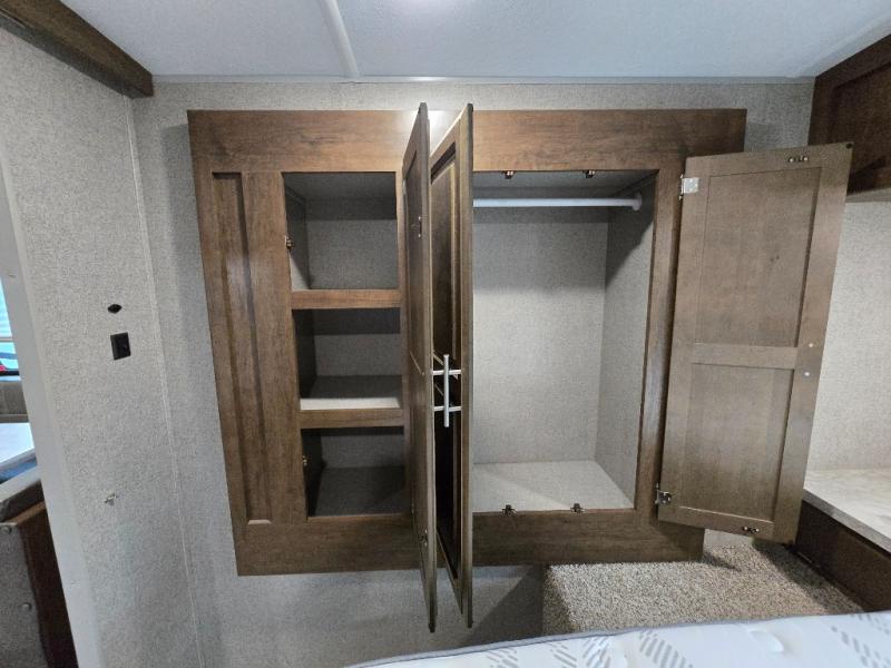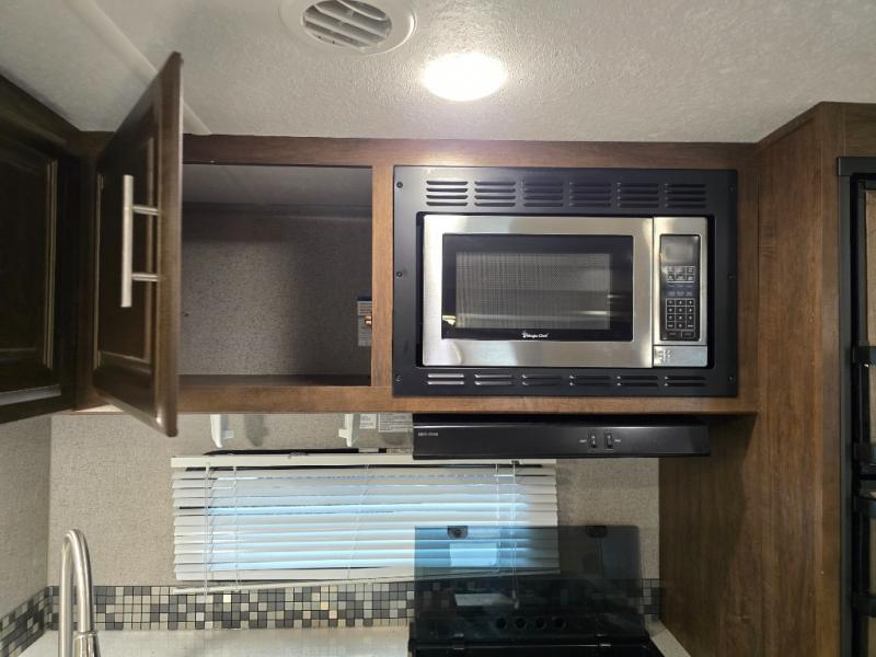 It will be easy to make plenty of memories with your family when you choose to camp with a Flagstaff Super Lite travel trailer by Forest River. These models have beautiful slatewood cabinetry with hardwood cabinet doors and drawer fronts, solid surface kitchen countertops, and ceiling LED 12 volt interior lighting. The 6 sided aluminum cage construction offers lightweight towing, the radius roof with interior vaulted ceilings give you more headroom, the WiFi ranger Wifi booster Sky 4, the enclosed underbelly, and the power awning with adjustable rain dump and LED light strip, will give you years of enjoyment!