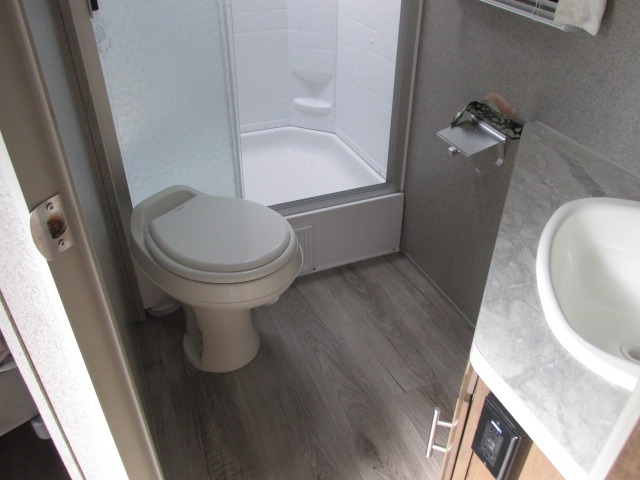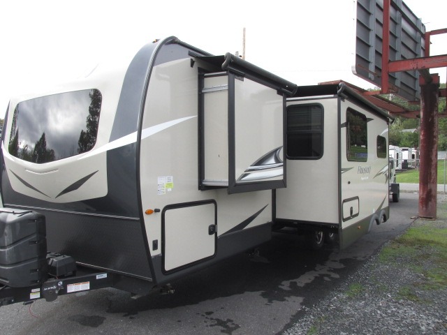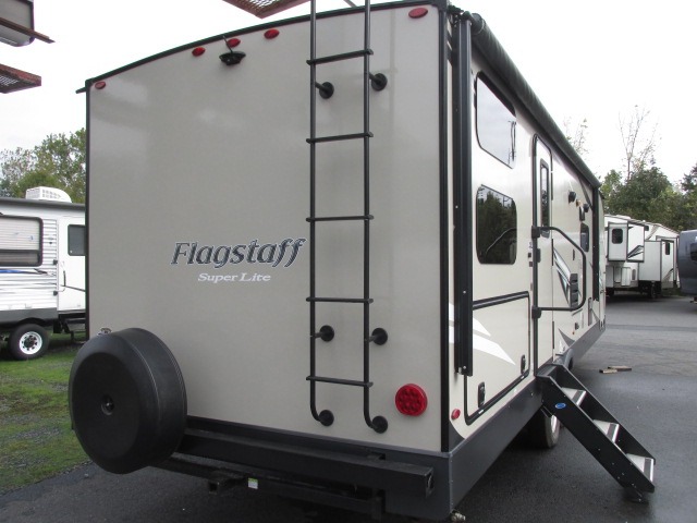It will be easy to make plenty of memories with your family when you choose to camp with a Flagstaff Super Lite travel trailer by Forest River. These models have beautiful slatewood cabinetry with hardwood cabinet doors and drawer fronts, solid surface kitchen countertops, and ceiling LED 12 volt interior lighting. The 6 sided aluminum cage construction offers lightweight towing, the radius roof with interior vaulted ceilings give you more headroom, the WiFi ranger Wifi booster Sky 4, the enclosed underbelly, and the power awning with adjustable rain dump and LED light strip, will give you years of enjoyment!