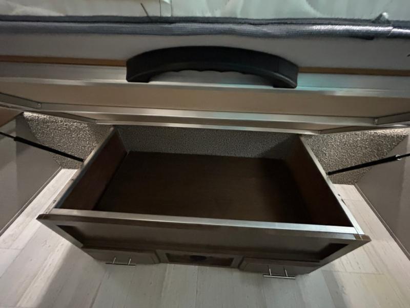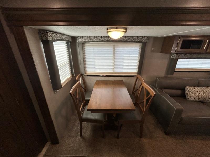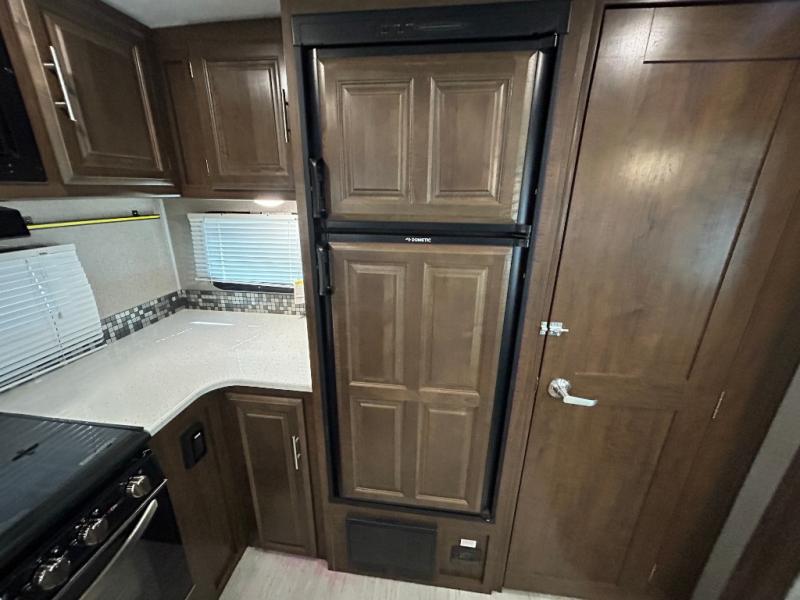 It will be easy to make plenty of memories with your family when you choose to camp with a Flagstaff Super Lite travel trailer by Forest River. These models have beautiful slatewood cabinetry with hardwood cabinet doors and drawer fronts, solid surface kitchen countertops, and ceiling LED 12 volt interior lighting. The 6 sided aluminum cage construction offers lightweight towing, the radius roof with interior vaulted ceilings give you more headroom, the WiFi ranger Wifi booster Sky 4, the enclosed underbelly, and the power awning with adjustable rain dump and LED light strip, will give you years of enjoyment!