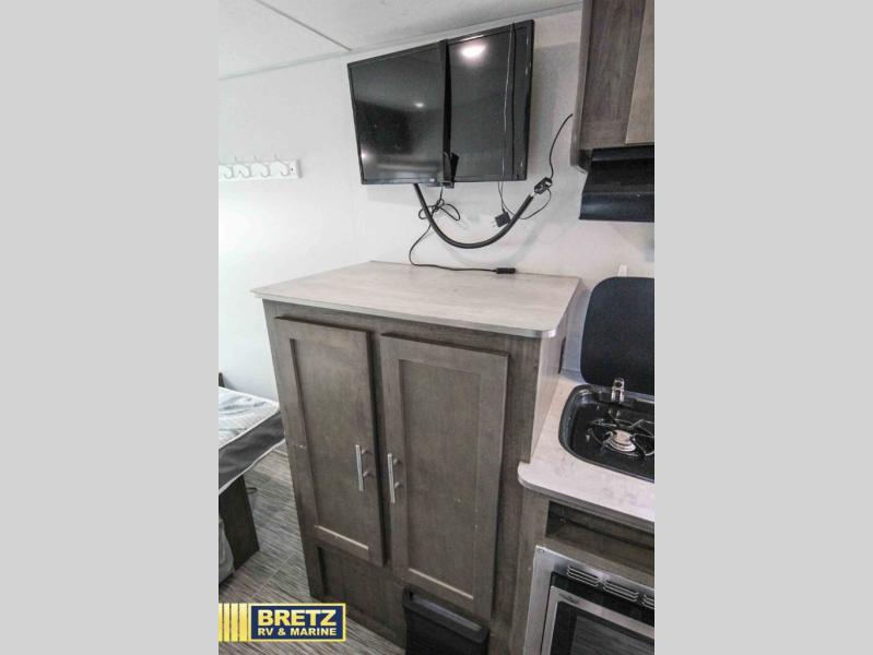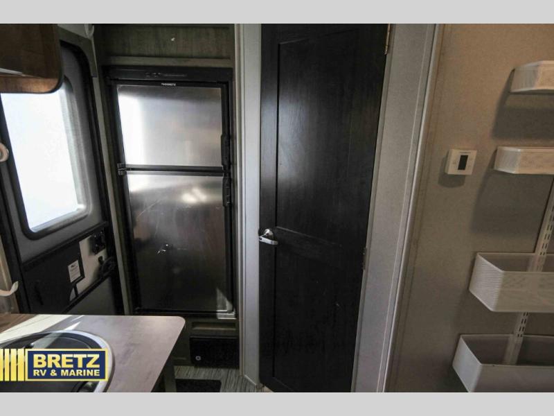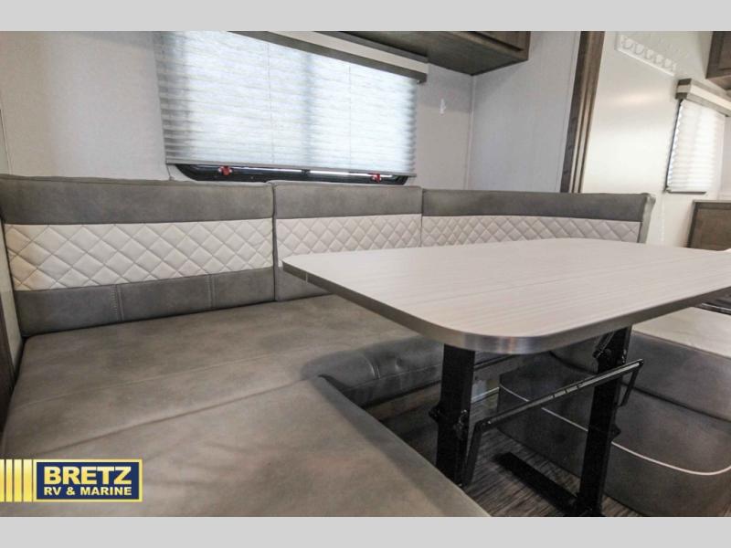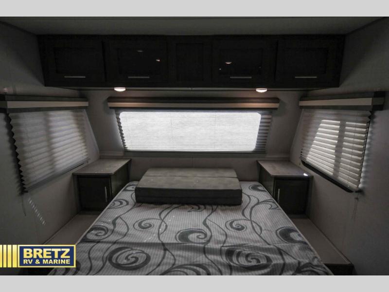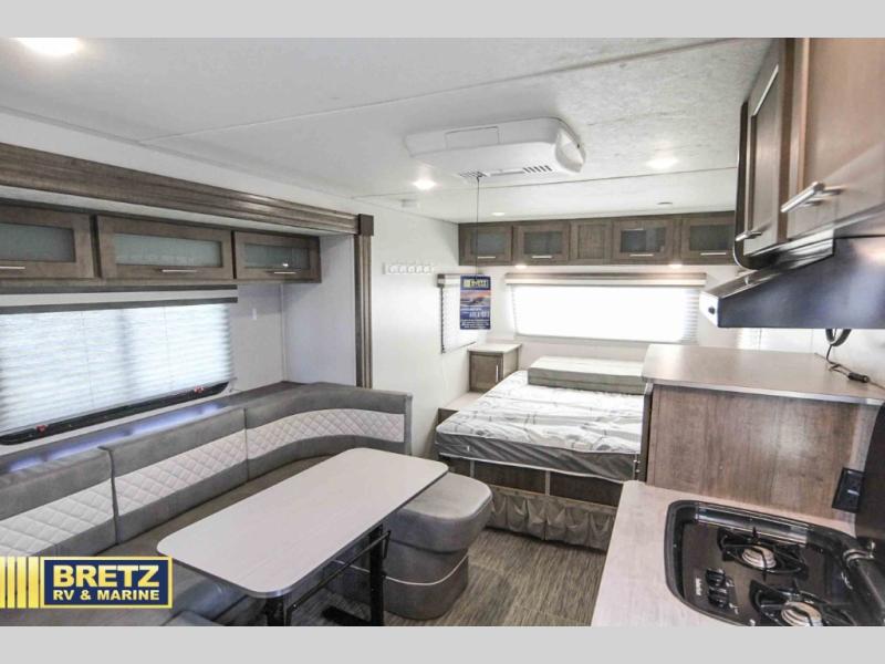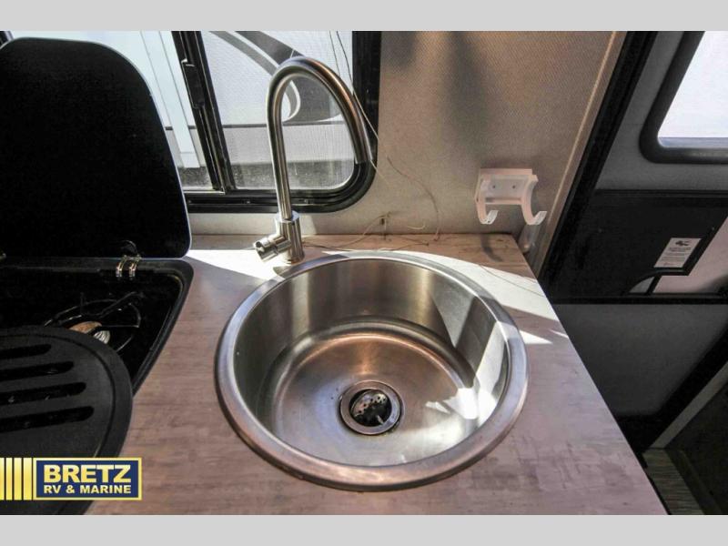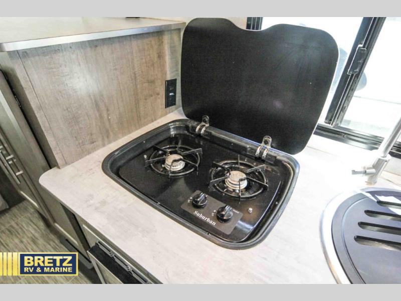 Coming in just under 5,000 lbs., this No Boundaries model has just what you need for any adventure you happen upon! You will appreciate the rear corner full bath in this unit that offers a radius shower, a toilet, and a sink. Just imagine relaxing, eating or sleeping on the chaise lounge with a removable ottoman and table, or taking a nap on the 60" x 80" queen size bed up front with super storage beneath. There is also a complete kitchen setup with a refrigerator, a single stainless steel sink, a two-burner cook-top with a glass cover, and a pantry for all of your non-perishable food items. You will also appreciate the featured USB charging station for all of your electronic charging needs. Take a step inside!