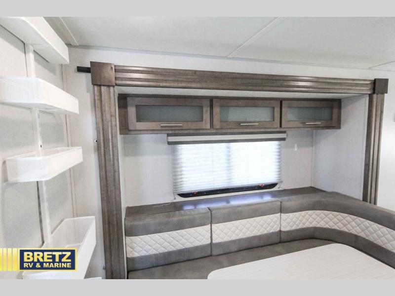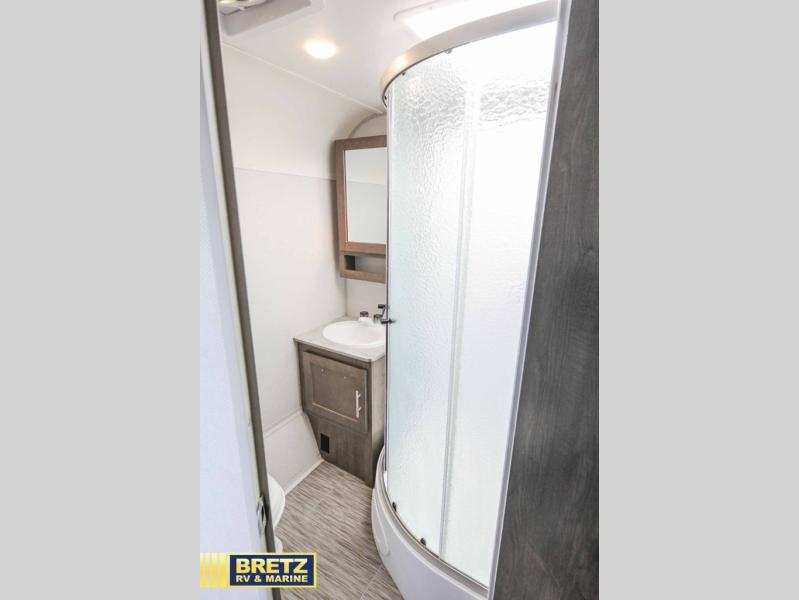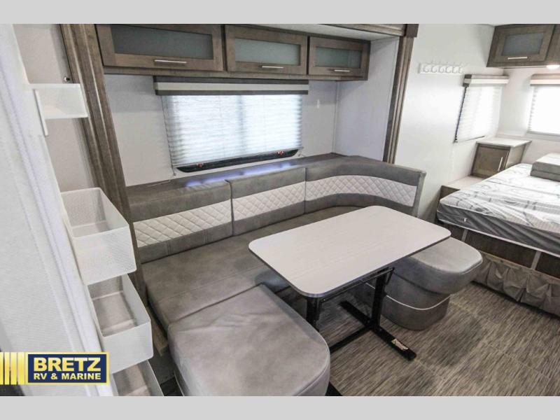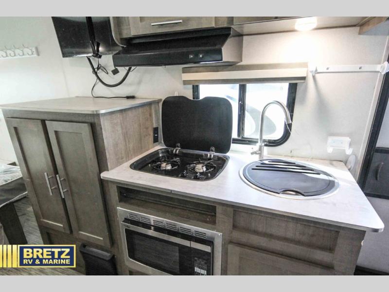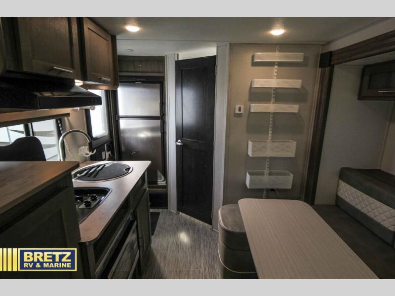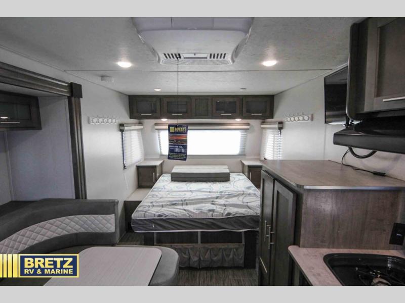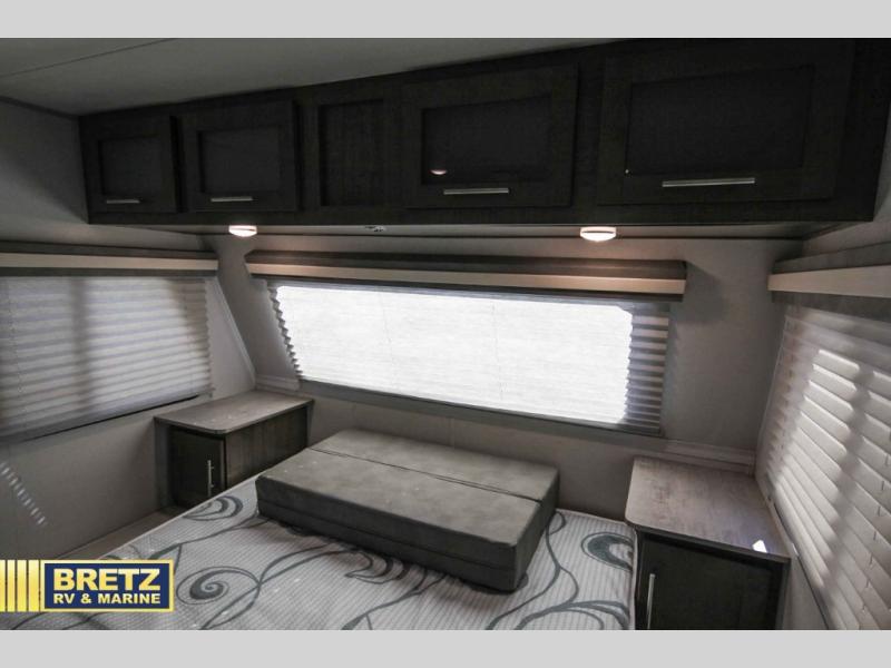 Coming in just under 5,000 lbs., this No Boundaries model has just what you need for any adventure you happen upon! You will appreciate the rear corner full bath in this unit that offers a radius shower, a toilet, and a sink. Just imagine relaxing, eating or sleeping on the chaise lounge with a removable ottoman and table, or taking a nap on the 60" x 80" queen size bed up front with super storage beneath. There is also a complete kitchen setup with a refrigerator, a single stainless steel sink, a two-burner cook-top with a glass cover, and a pantry for all of your non-perishable food items. You will also appreciate the featured USB charging station for all of your electronic charging needs. Take a step inside!