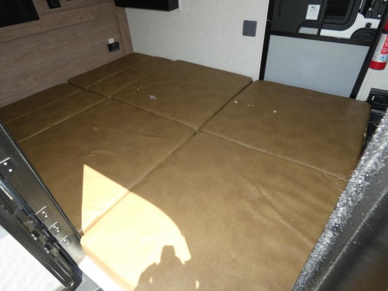 When versatility is what you need, choose this travel trailer toy hauler for your new base camp when out exploring on your ATV or dirt bikes. Model NB10.6 provides a rear ramp door so you can easily load and unload all of your gear and toys. Coming in just under 2,000 lbs., you will easily be able to tow it with your mid-sized SUV or small truck. There is plenty of storage space throughout, plus an outdoor slide out cook-top and cooler so you can enjoy a warm meal. There is also a 60" x 82" lounger in back for two to sleep comfortable inside. LED lighting, both inside and out, makes any task easy to accomplish even after dark.
