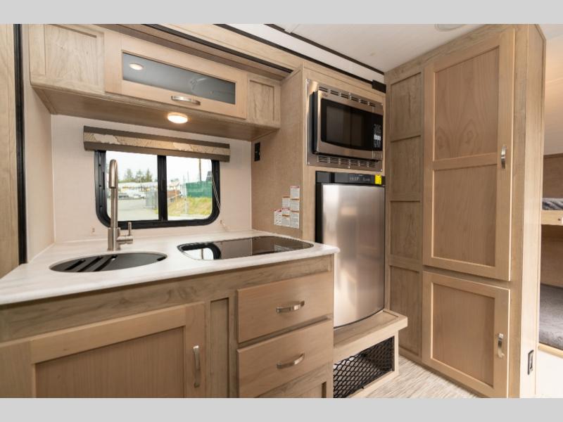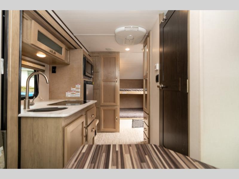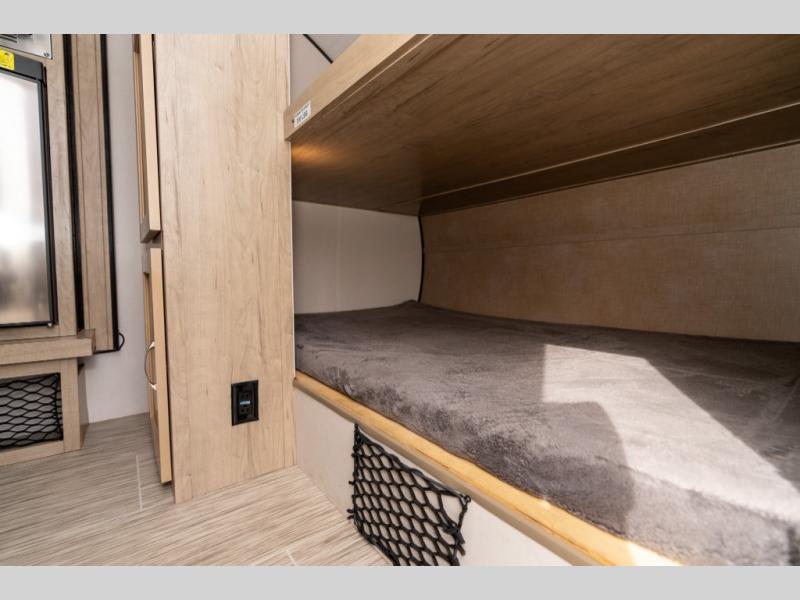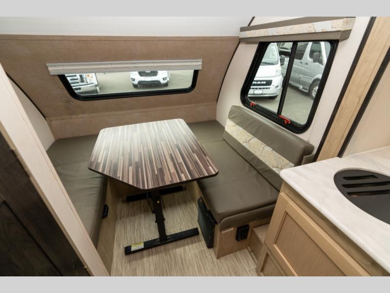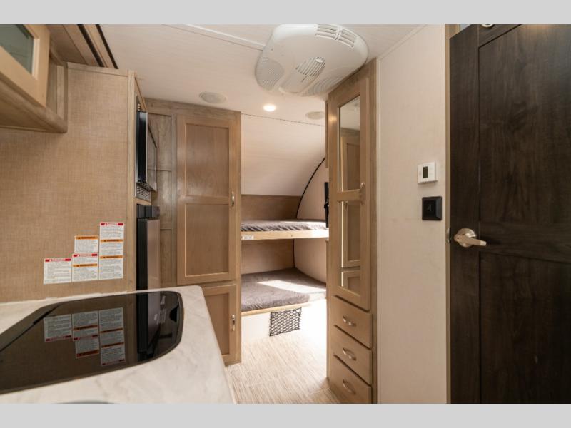 Whether you are headed out to a nearby campground or on a more extravagant excursion, this R-Pod travel trailer is ideal for you! After you set up camp, then come enjoy the spacious interior. This unit has a three-way refrigerator and a two-burner cooktop to make a family meal. Sleeping space can be found on the bunk beds, plus the U-shaped dinette converts into additional sleeping space, if needed. With an entertainment center in this model, bring along a TV for movie nights! This travel trailer also has a pass-through storage for any large items you want to bring along!