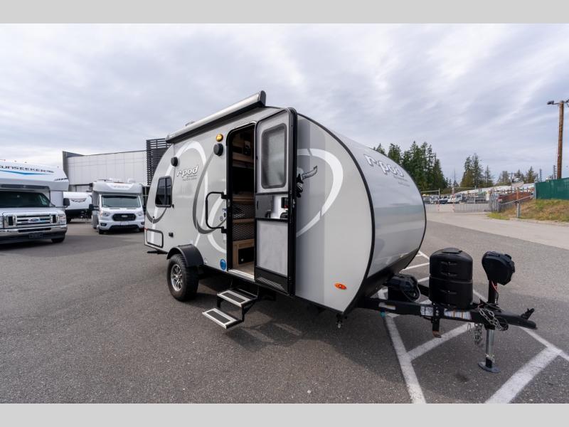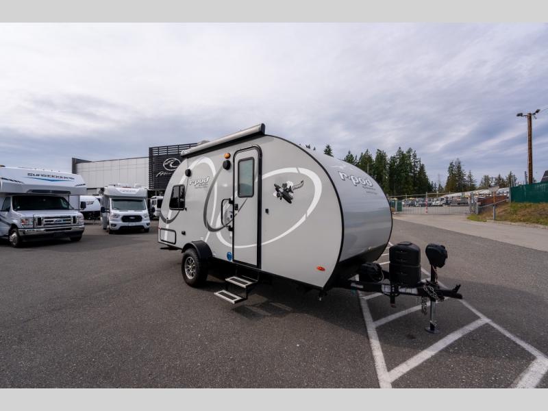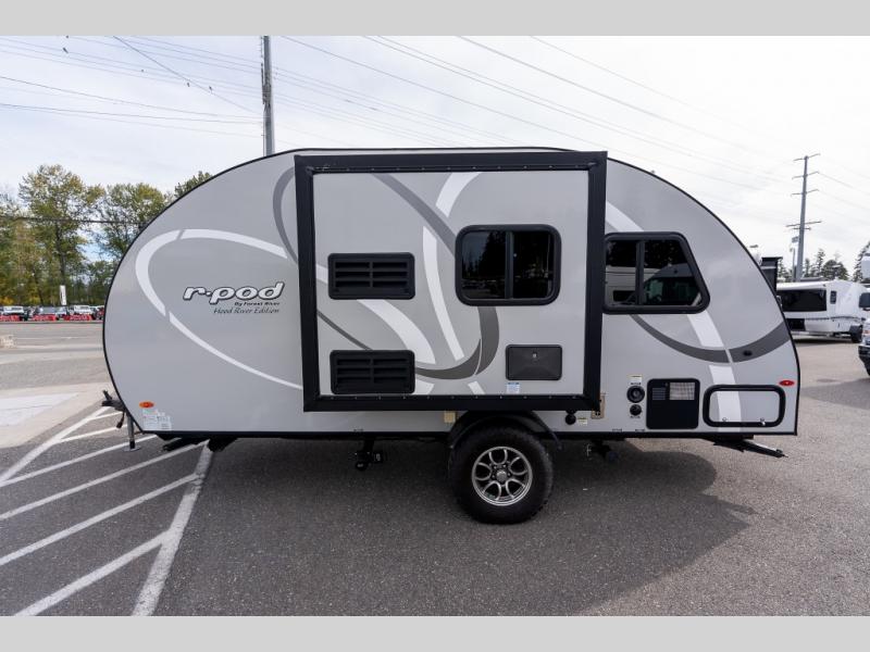 For a sturdy one-of-a-kind travel trailer, choose the R-Pod by Forest River. Along the exterior, you will find a powder-coated steel frame, custom tinted safety glass windows, and convenient magnet baggage-door catches. Inside of each model, you will enjoy Designer Carefree flooring, hardwood drawer fronts with full-extension ball bearing drawer glides, plus decorative window treatments to give you an at-home feel. With safety features like the breakaway switch, the LP, smoke, and CO detectors, plus a fire extinguisher, you can be sure that you will be safe for years to come. These units are ready to go when you are, so come select your R-Pod today!