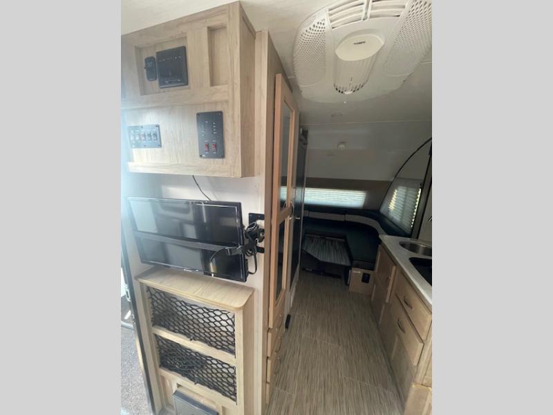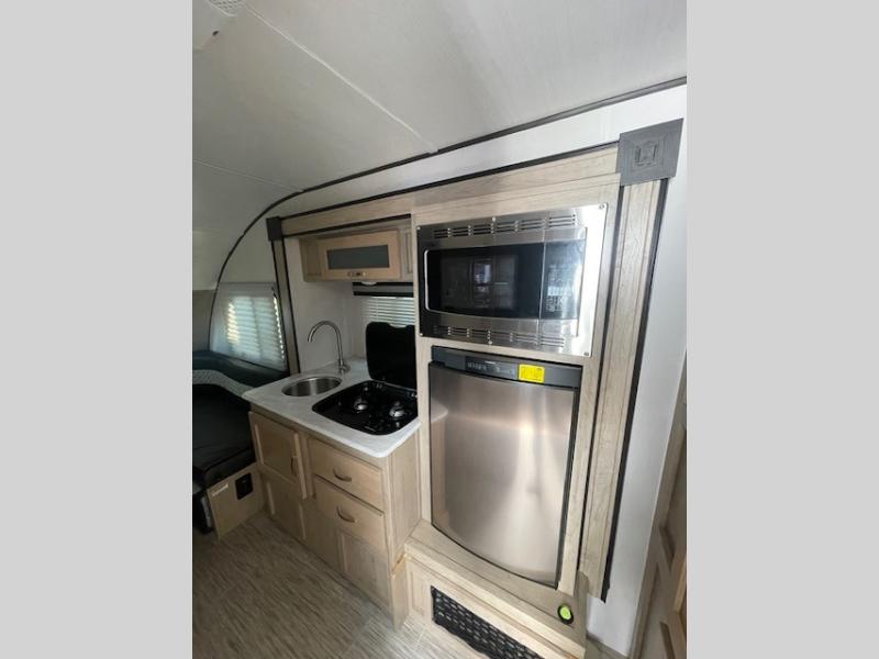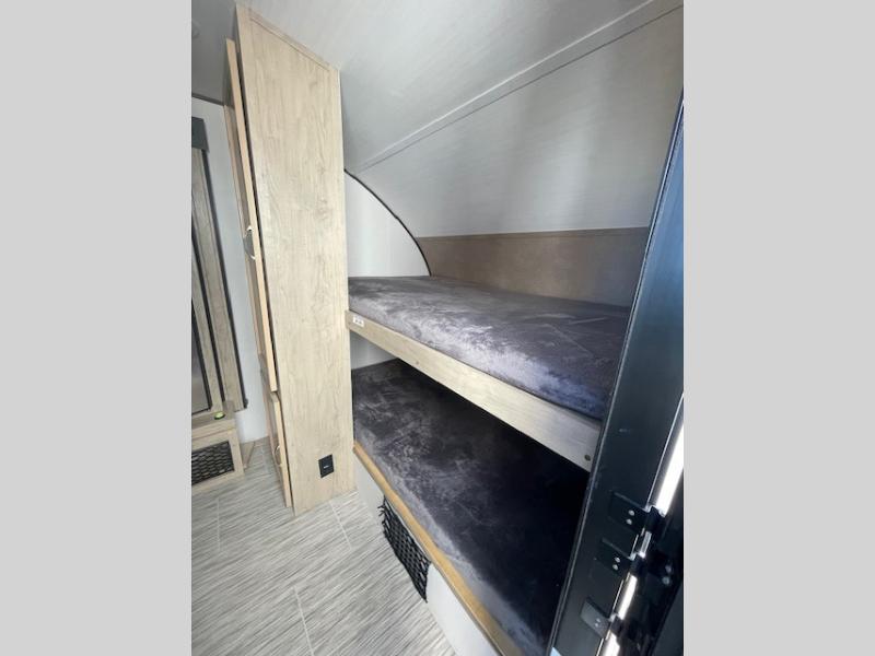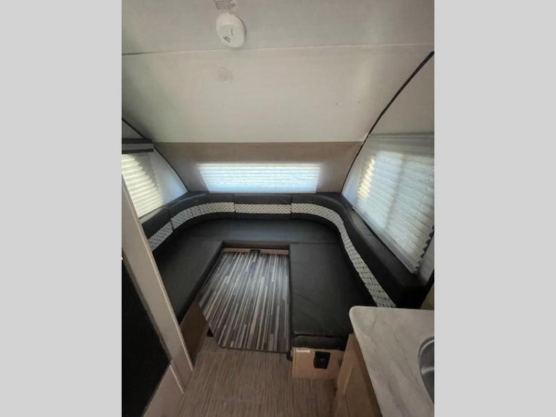 Whether you are headed out to a nearby campground or on a more extravagant excursion, this R-Pod travel trailer is ideal for you! After you set up camp, then come enjoy the spacious interior thanks to the slide out. This unit also has a refrigerator, a two-burner cooktop and a convection microwave to make a family meal. Sleeping space can be found on the bunk beds, plus the U-shaped dinette converts into additional sleeping space, if needed. With an entertainment center and an LED TV, you can enjoy watching a show before bedtime. And you can store your outdoor gear in the pass-through storage.