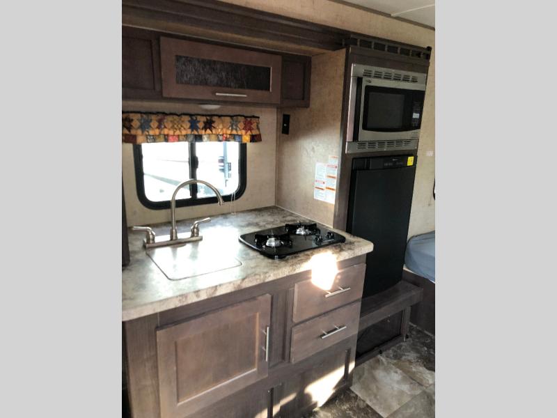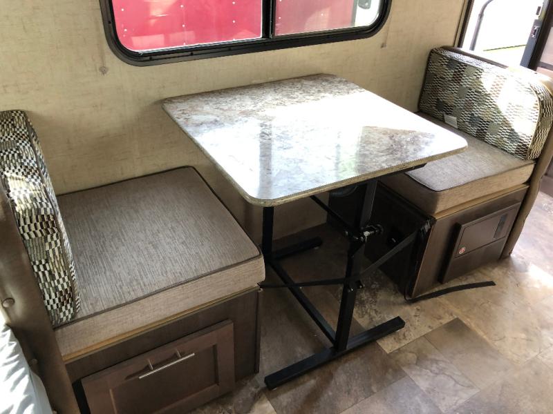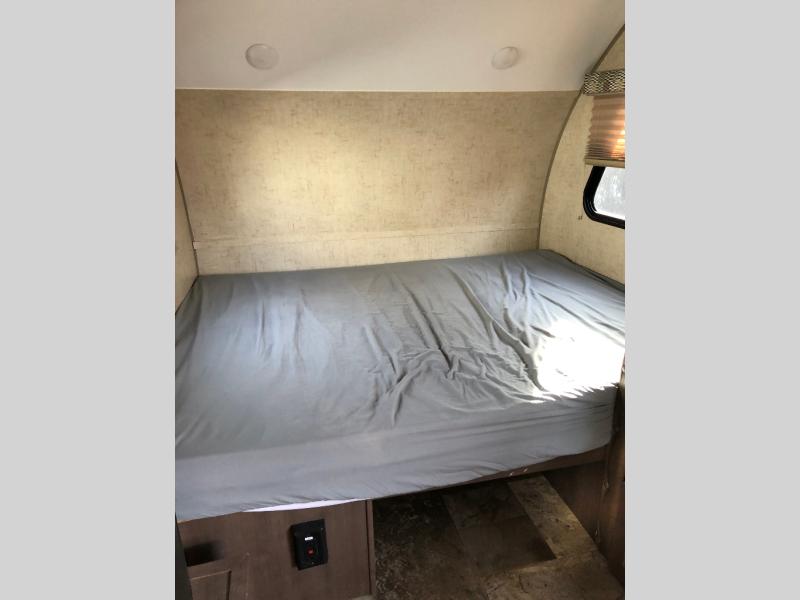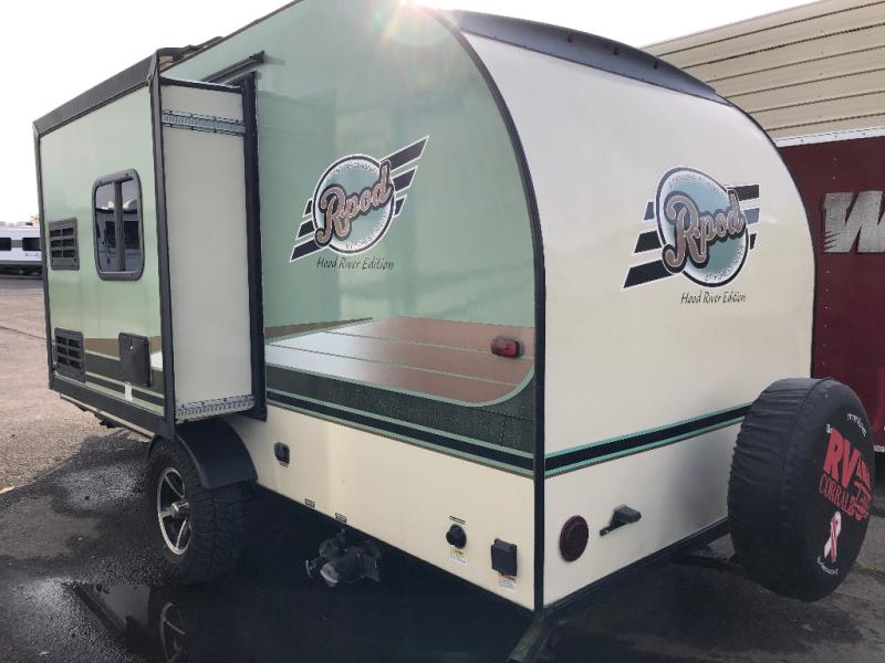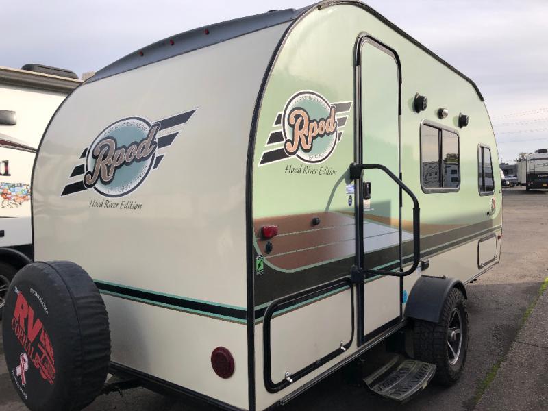 Get ready to travel just about anywhere with this lightweight R-Pod travel trailer! This model is ideal for any couple. There is sleeping space on the front RV queen bed, and the 24" x 75" booth dinette can easily convert into a sleeping spot for a child. The slide out along the roadside helps open up the floor space, plus you will find all of the kitchen amenities here. The spacious full bath in the rear has plenty of room to easily get ready for any adventure that lies ahead. You will also enjoy all of the exterior storage for all of your outdoor camping gear. This unit even includes a TV for movie nights!
