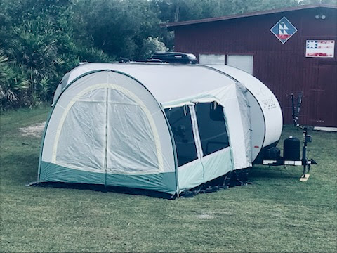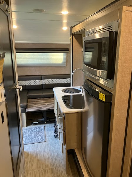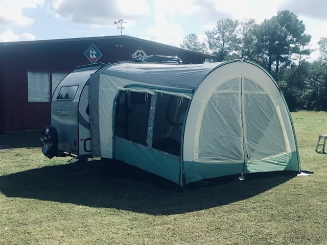 Get ready for a fun camping trip with this R-Pod travel trailer. With room for four, bring along the grandkids for memories they won't forget. Easily prepare a meal with the two-burner cooktop and the convection microwave, and store your food in the refrigerator, and place the dry goods in the pantry. You'll love the two twin beds with a nightstand just like at home. Bring along Monopoly for a game night around the U-shaped dinette that everyone will enjoy or watch the LED TV. And with a pass-through storage along the exterior, you can store your camping chairs, charcoal and such leaving the inside for clothing and food.