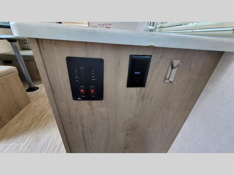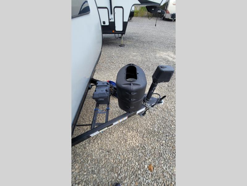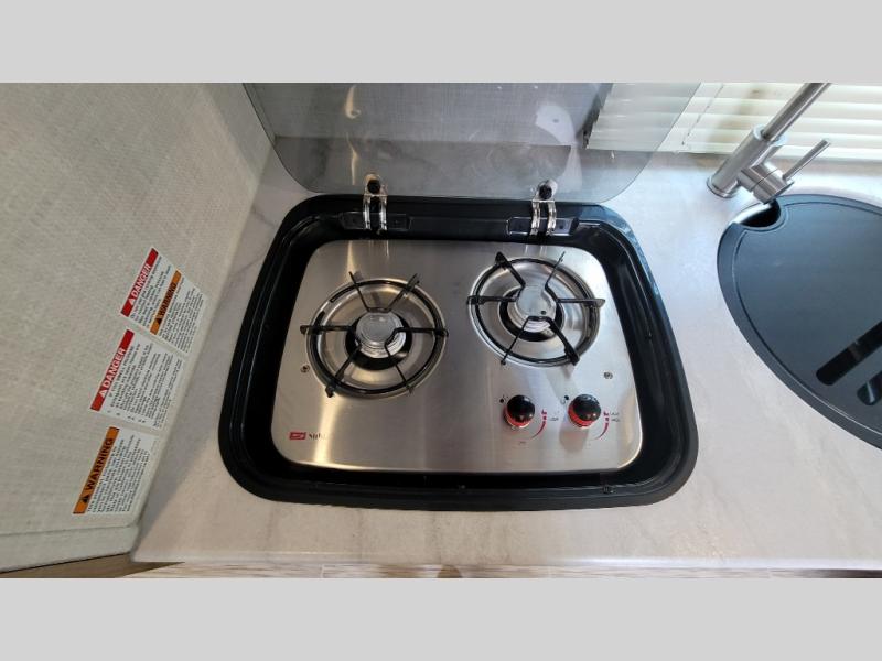 You're going to love all of the conveniences and versatility of this R-Pod travel trailer! The front Murphy bed folds away to reveal the sofa which gives you a comfortable place to sit during the day and to sleep at night too. The rear full bath features everything you will need to get squeaky clean each morning as well as a large wardrobe for you to store your linens. After you have whipped up your best meal with the two-burner cooktop, you can head to the 30" x 75" booth dinette and enjoy eating it there comfortably. There is plenty of storage space inside, but if you need more space, then you can use the exterior pass-through storage!