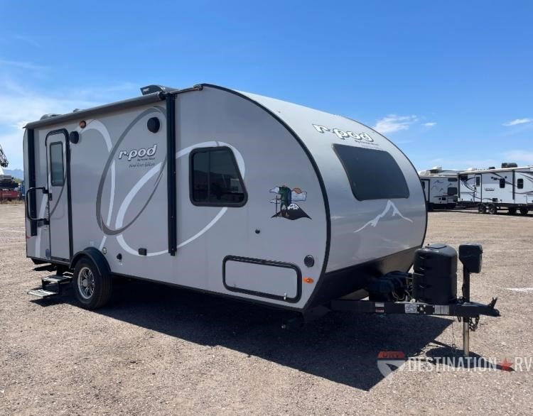 For a sturdy one-of-a-kind travel trailer, choose the R-Pod by Forest River. Along the exterior, you will find a powder-coated steel frame, custom tinted safety glass windows, and convenient magnet baggage-door catches. Inside of each model, you will enjoy Designer Carefree flooring, hardwood drawer fronts with full-extension ball bearing drawer glides, plus decorative window treatments to give you an at-home feel. With safety features like the breakaway switch, the LP, smoke, and CO detectors, plus a fire extinguisher, you can be sure that you will be safe for years to come. These units are ready to go when you are, so come select your R-Pod today!