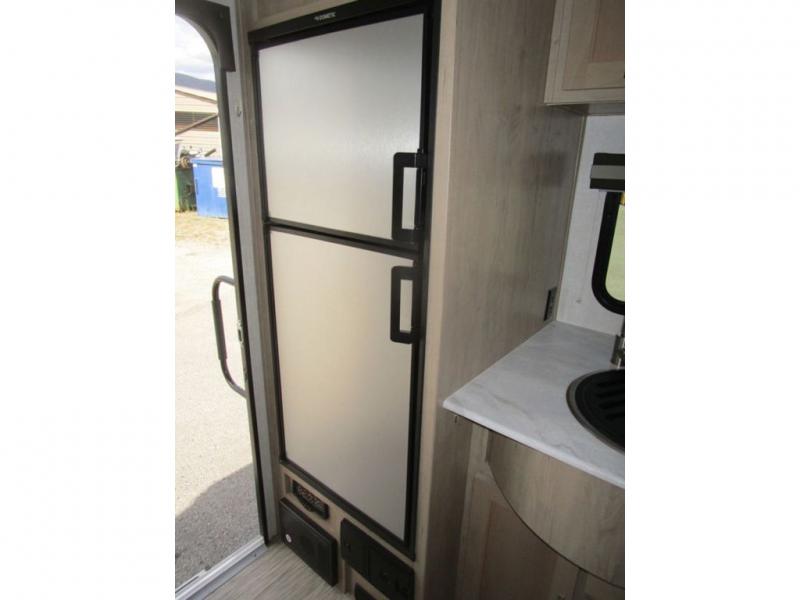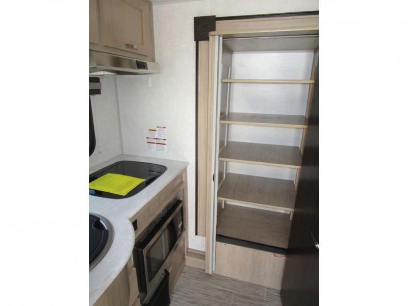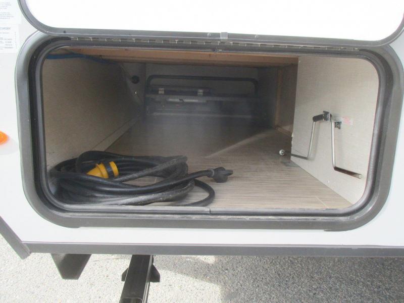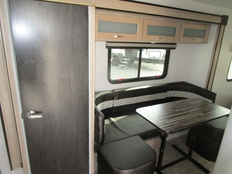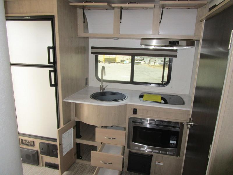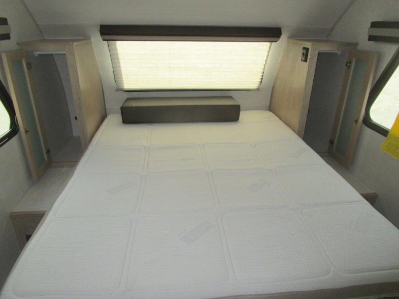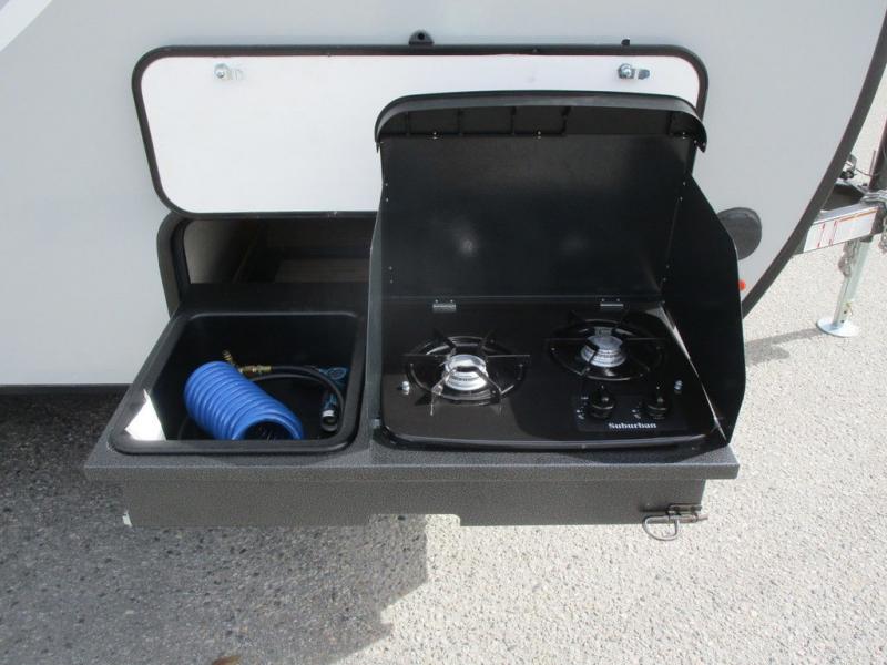 You are going to love waking up every camping weekend in this R-Pod travel trailer which features plenty of space and loads of storage for all of your things. The rear kitchen is unique and provides a large window above the cooktop and sink so that you can feel like you are cooking right outdoors even on a day when the weather isn't perfect. The U-shaped dinette and pantry within the slide out provides dining and sleeping space, dry good storage as well as more interior floor space. The front RV queen bed will allow you to wake refreshed for each new day of adventure with extra walking around space, and you will appreciate the windows on each side for cross ventilation, as well as a great view of your surroundings.